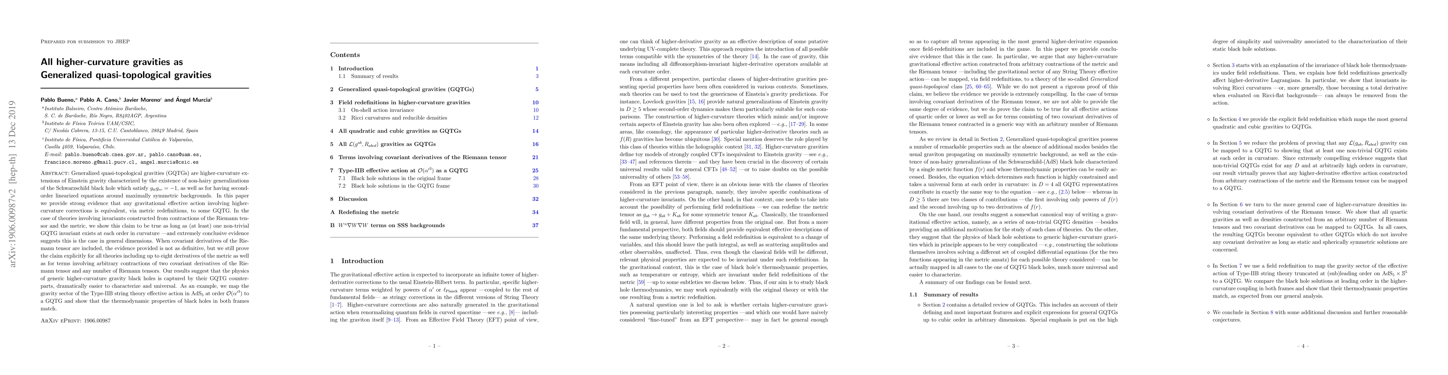 Generalized quasi-topological gravities (GQTGs) are higher-curvature extensions of Einstein gravity characterized by the existence of non-hairy generalizations of the Schwarzschild black hole which satisfy $g_{tt}g_{rr}=-1$, as well as for having second-order linearized equations around maximally symmetric backgrounds. In this paper we provide strong evidence that any gravitational effective action involving higher-curvature corrections is equivalent, via metric redefinitions, to some GQTG. In the case of theories involving invariants constructed from contractions of the Riemann tensor and the metric, we show this claim to be true as long as (at least) one non-trivial GQTG invariant exists at each order in curvature ---and extremely conclusive evidence suggests this is the case in general dimensions. When covariant derivatives of the Riemann tensor are included, the evidence provided is not as definitive, but we still prove the claim explicitly for all theories including up to eight derivatives of the metric as well as for terms involving arbitrary contractions of two covariant derivatives of the Riemann tensor and any number of Riemann tensors. Our results suggest that the physics of generic higher-curvature gravity black holes is captured by their GQTG counterparts, dramatically easier to characterize and universal. As an example, we map the gravity sector of the Type-IIB string theory effective action in AdS$_5$ at order $\mathcal{O}({\alpha^{\prime}}^3)$ to a GQTG and show that the thermodynamic properties of black holes in both frames match.
