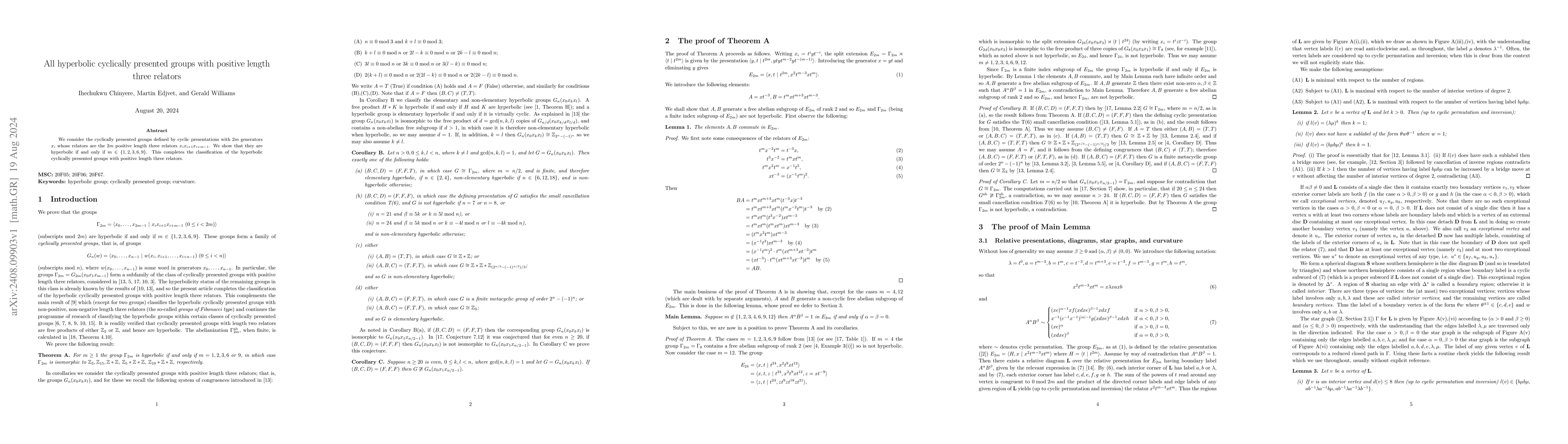 We consider the cyclically presented groups defined by cyclic presentations with $2m$ generators $x_i$ whose relators are the $2m$ positive length three relators $x_ix_{i+1}x_{i+m-1}$. We show that they are hyperbolic if and only if $m\in \{1,2,3,6,9\}$. This completes the classification of the hyperbolic cyclically presented groups with positive length three relators.