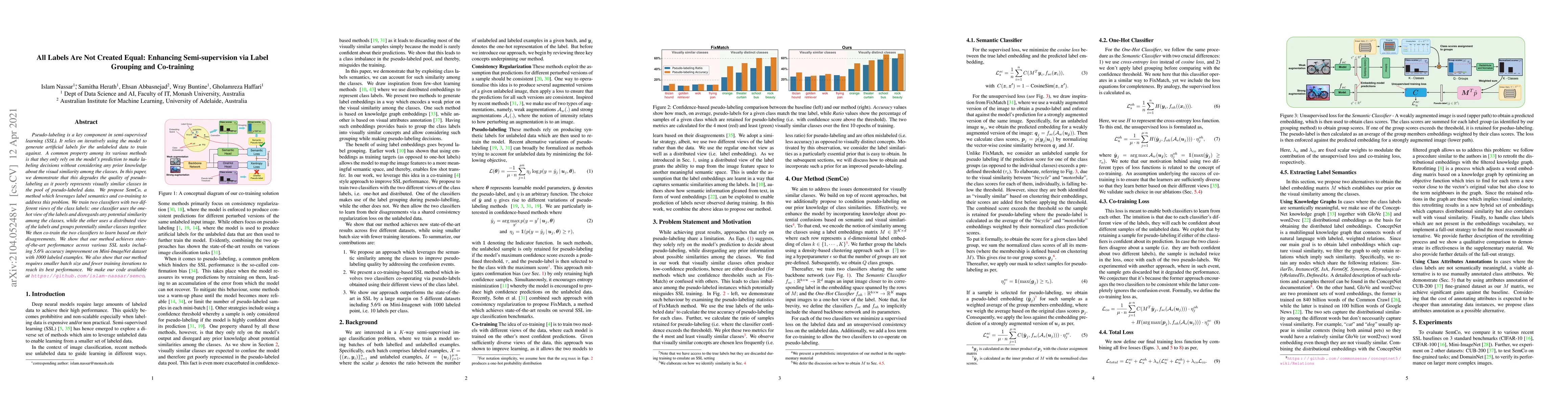This paper proposes SemCo, a semi-supervised learning method that enhances pseudo-labeling by leveraging label semantics and co-training. It groups visually similar classes and trains two classifiers with different label views to improve pseudo-label quality and achieve state-of-the-art performance across various tasks.