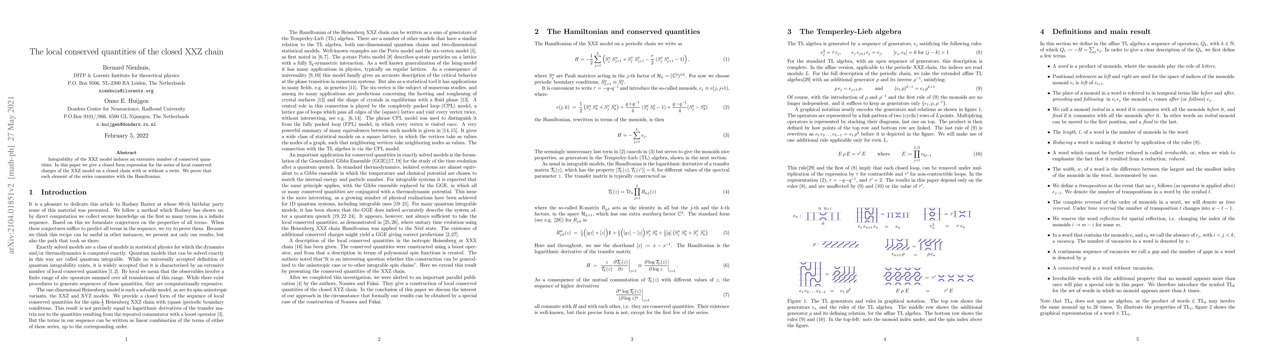This paper presents a closed-form expression for the series of local conserved charges in the XXZ model, demonstrating their commutation with the Hamiltonian and exploring their implications for the model's integrability.