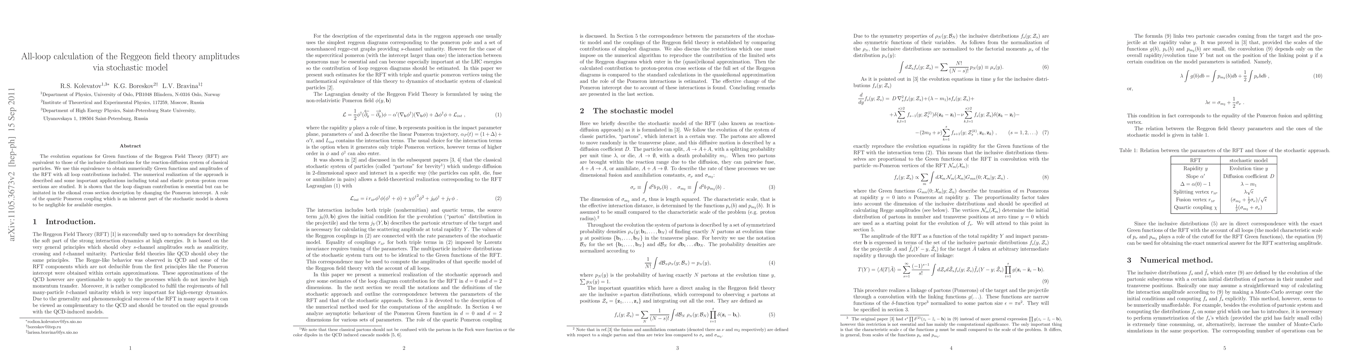 This paper presents a stochastic model to numerically compute all-loop contributions to Reggeon Field Theory (RFT) amplitudes, demonstrating their equivalence to reaction-diffusion systems. The study highlights the importance of loop diagrams in RFT and shows that the quartic Pomeron coupling is negligible at current energies.