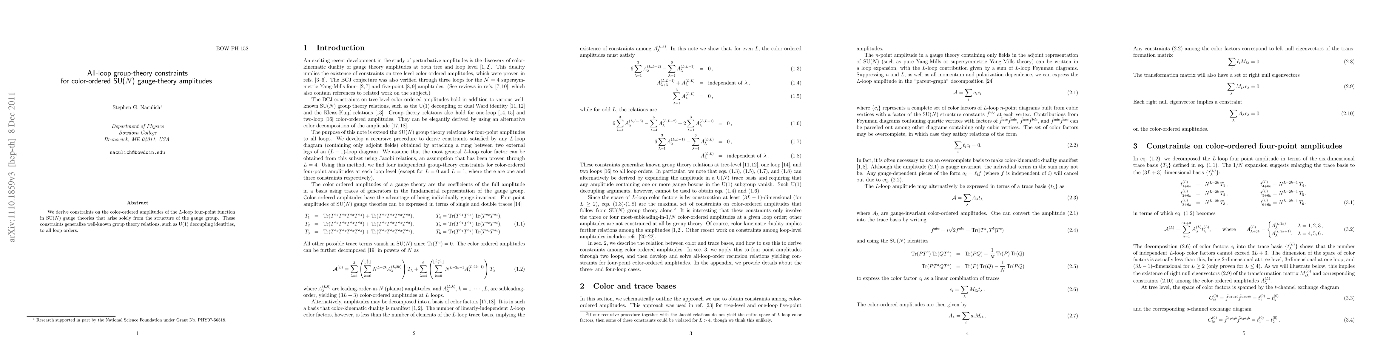 We derive constraints on the color-ordered amplitudes of the L-loop four-point function in SU(N) gauge theories that arise solely from the structure of the gauge group. These constraints generalize well-known group theory relations, such as U(1) decoupling identities, to all loop orders.