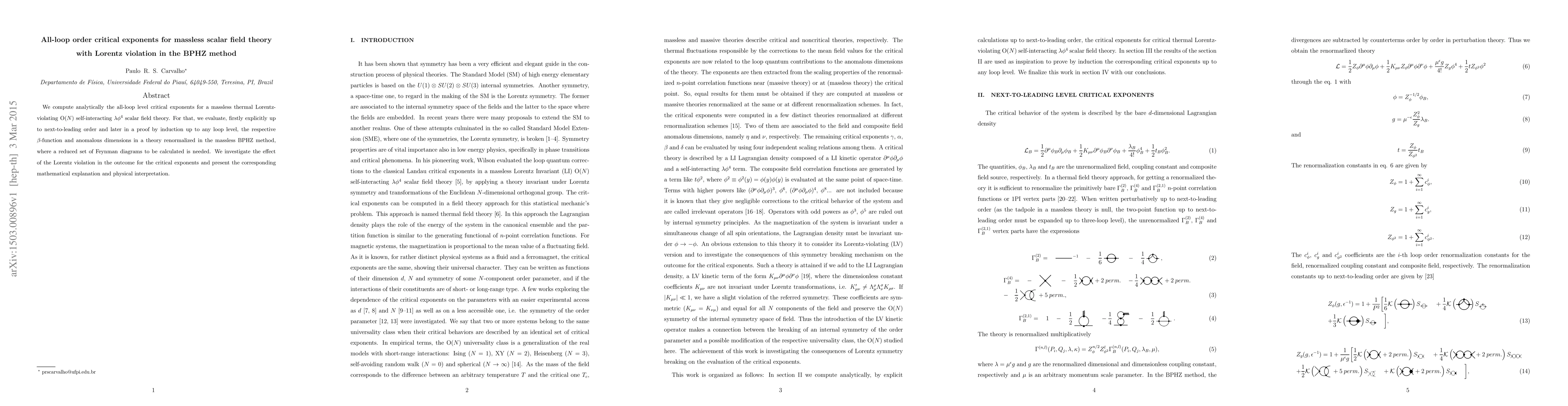 This paper analytically computes all-loop critical exponents for a massless thermal Lorentz-violating $\lambda\phi^{4}$ scalar field theory using the BPHZ renormalization method. It investigates the impact of Lorentz violation on the critical exponents and provides a mathematical explanation and physical interpretation of the results.
