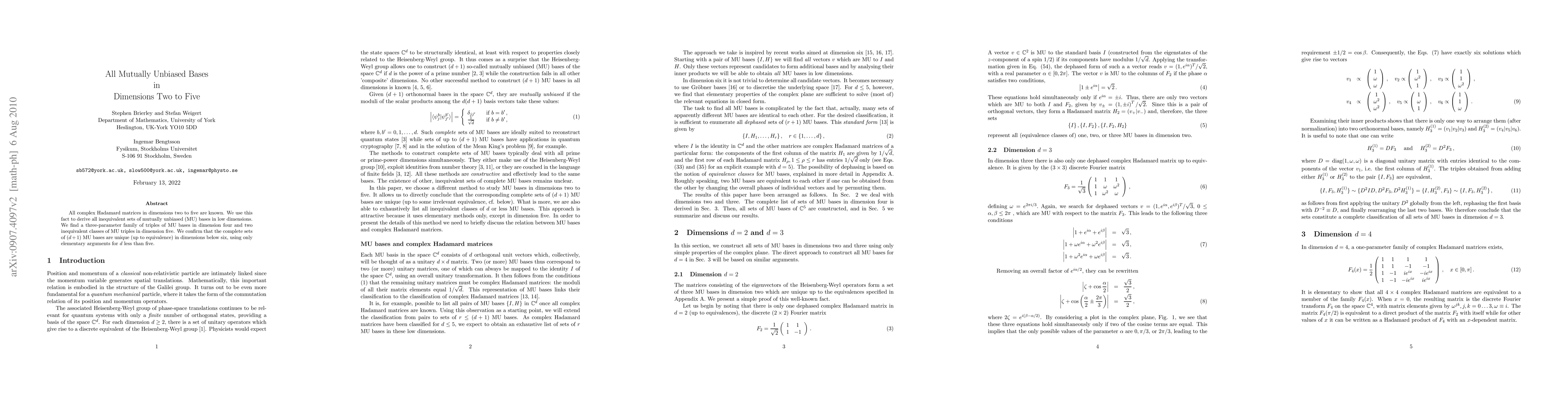 Their findings confirm the uniqueness of complete sets of (d+1) MU bases in low dimensions below six, using elementary arguments for d less than five.