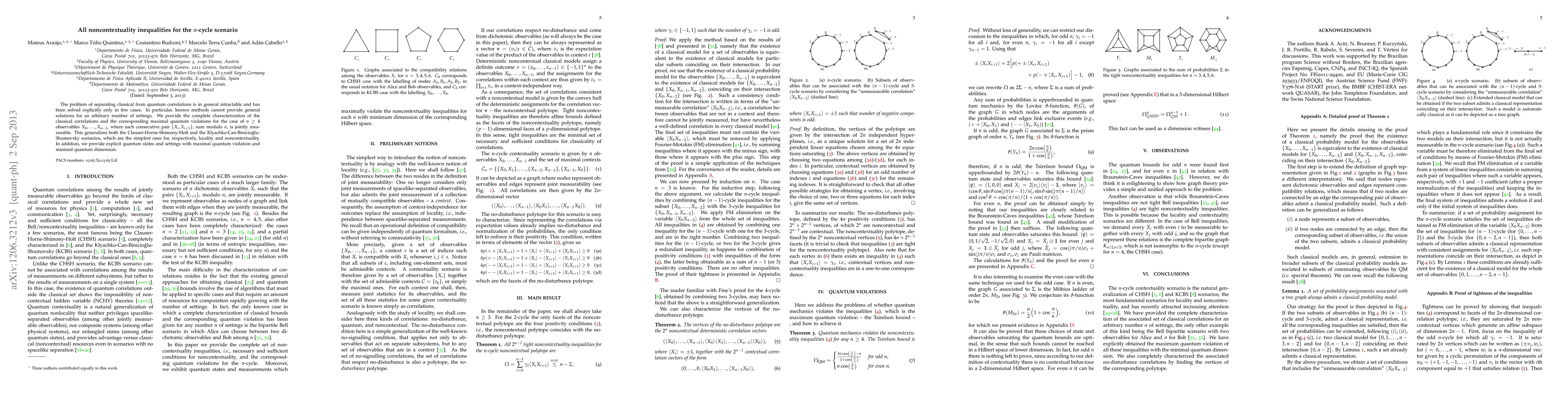 The problem of separating classical from quantum correlations is in general intractable and has been solved explicitly only in few cases. In particular, known methods cannot provide general solutions for an arbitrary number of settings. We provide the complete characterization of the classical correlations and the corresponding maximal quantum violations for the case of n >= 4 observables X_0, ...,X_{n-1}, where each consecutive pair {X_i,X_{i+1}}, sum modulo n, is jointly measurable. This generalizes both the Clauser-Horne-Shimony-Holt and the Klyachko-Can-Binicioglu-Shumovsky scenarios, which are the simplest ones for, respectively, locality and noncontextuality. In addition, we provide explicit quantum states and settings with maximal quantum violation and minimal quantum dimension.