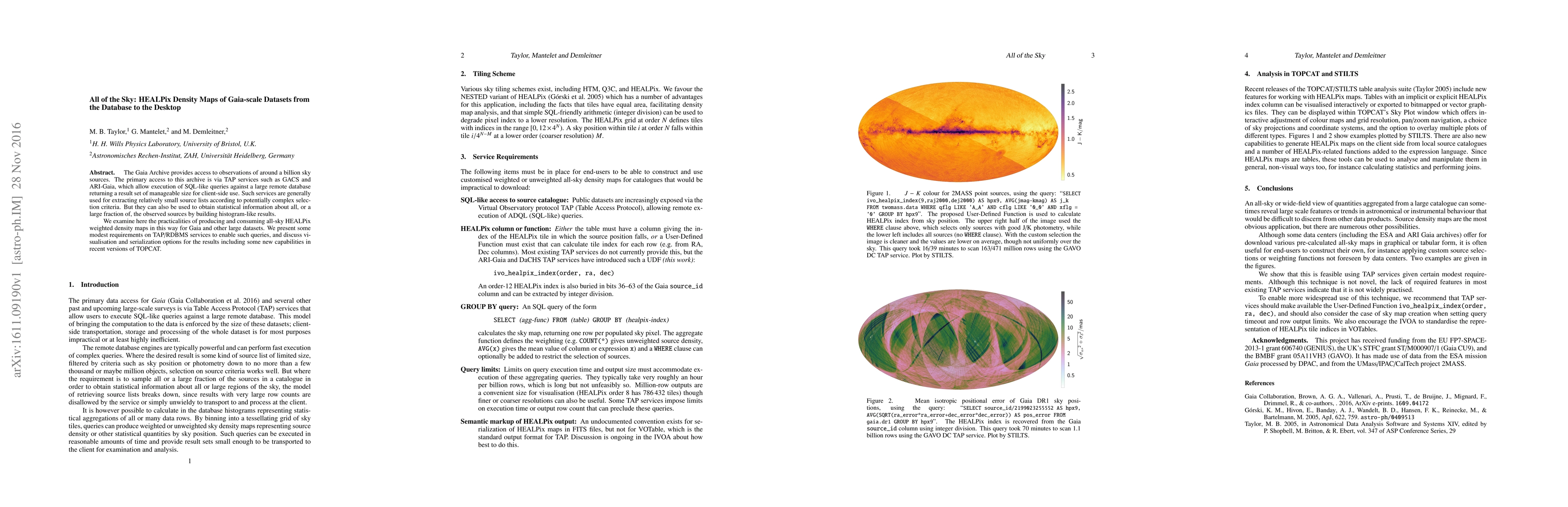 This paper explores the creation of all-sky HEALPix density maps from the Gaia Archive using TAP services, highlighting the requirements for efficient data retrieval and presenting visualization and serialization techniques, including new TOPCAT features.