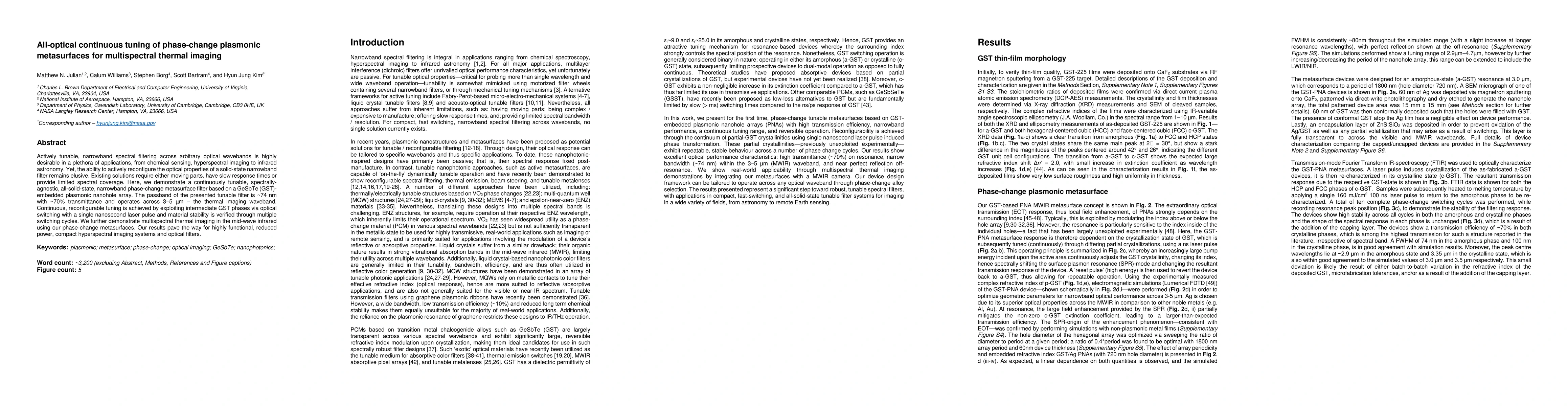 This work demonstrates the potential for actively tunable thermal imaging systems using PNA filters