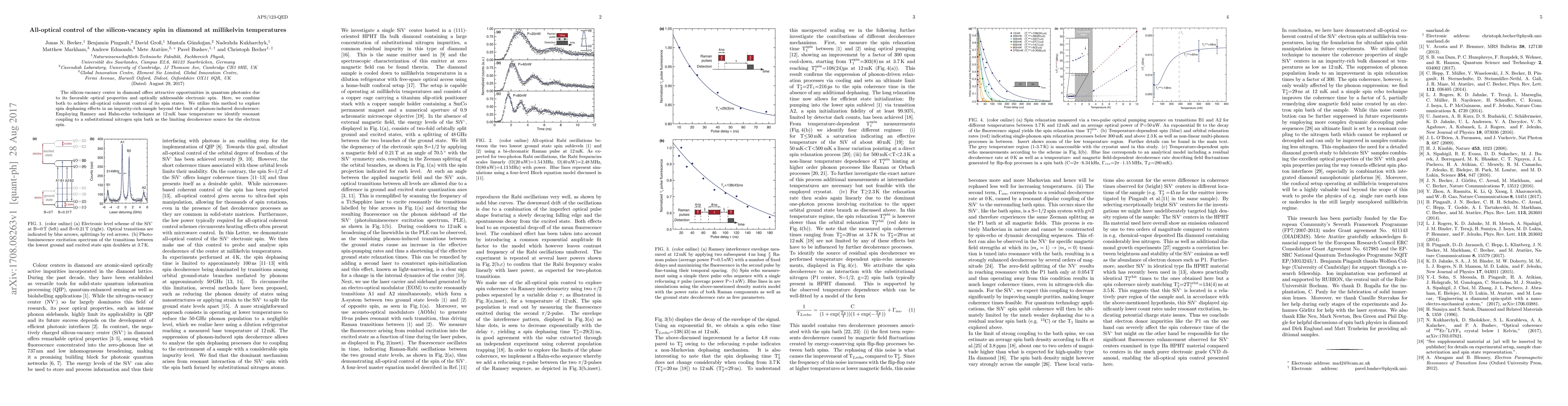 This research demonstrates all-optical coherent control of silicon-vacancy spin states in diamond at millikelvin temperatures, revealing resonant coupling to a nitrogen spin bath as the main decoherence source, beyond phonon-induced limits.