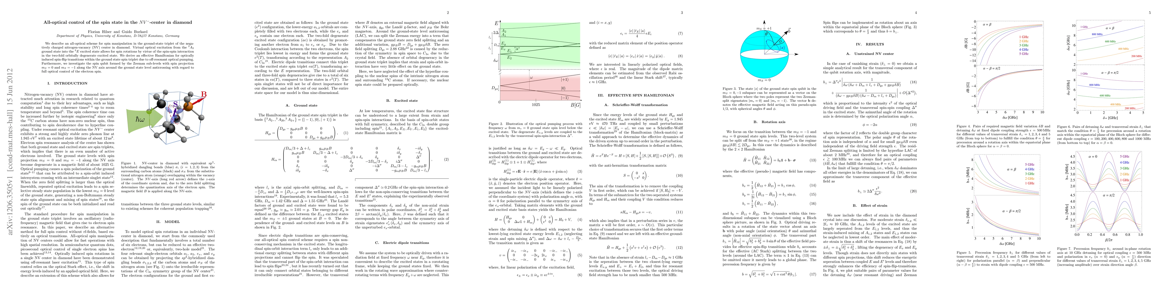 This paper proposes an all-optical method for manipulating the spin state of the NV-center in diamond by utilizing virtual optical excitations to enable spin rotations. The study also derives an effective Hamiltonian for spin-flip transitions and examines the potential for full optical control of the electron spin in the NV-center.