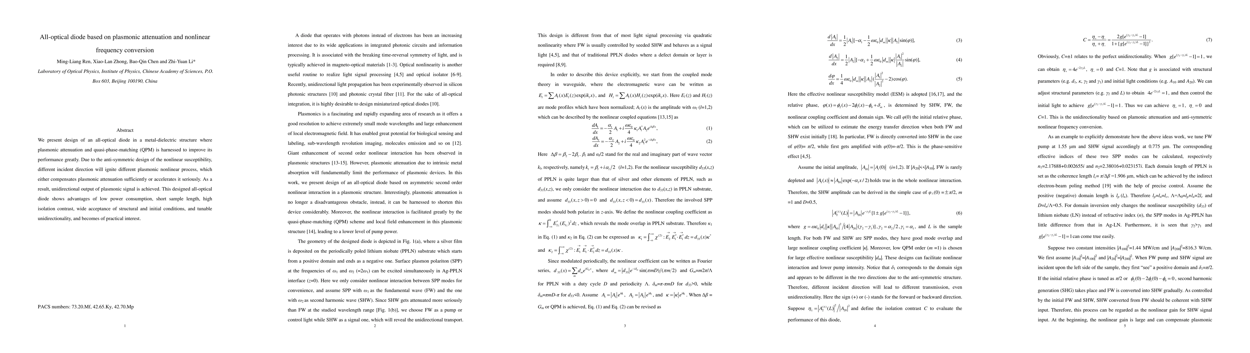 We present design of an all-optical diode in a metal-dielectric structure where plasmonic attenuation and quasi-phase-matching (QPM) is harnessed to improve its performance greatly. Due to the anti-symmetric design of the nonlinear susceptibility, different incident direction will ignite different plasmonic nonlinear process, which either compensates plasmonic attenuation sufficiently or accelerates it seriously. As a result, unidirectional output of plasmonic signal is achieved. This designed all-optical diode shows advantages of low power consumption, short sample length, high isolation contrast, wide acceptance of structural and initial conditions, and tunable unidirectionality, and becomes of practical interest.