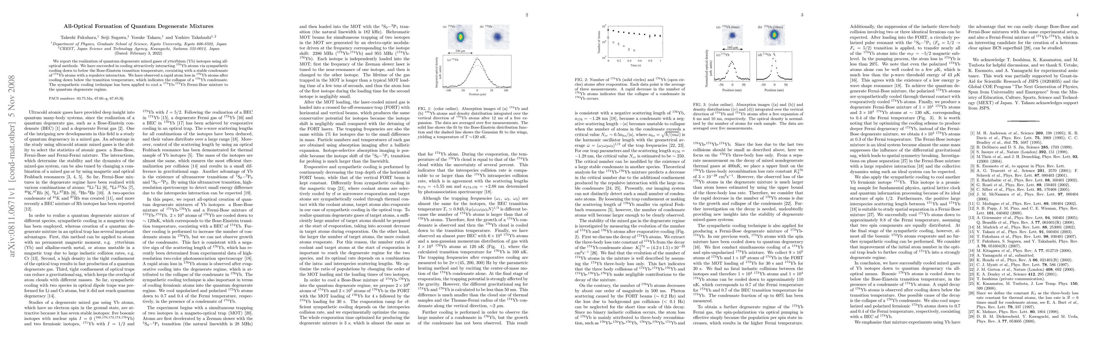 This paper details the creation of quantum degenerate mixtures of ytterbium isotopes using all-optical methods, achieving sympathetic cooling of 176Yb atoms alongside a stable 174Yb condensate, and observing a collapse of the 176Yb condensate below the transition temperature. The technique also successfully cooled a 173Yb-174Yb Fermi-Bose mixture to the quantum degenerate regime.