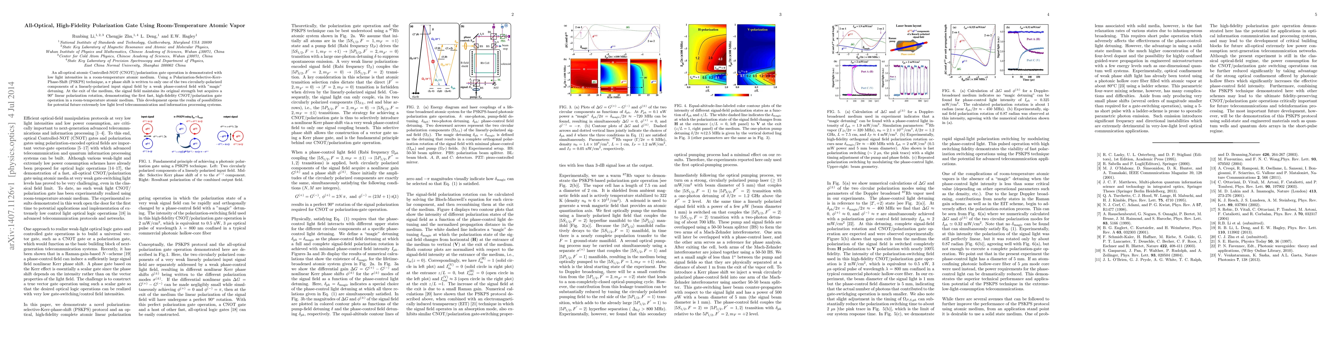This paper demonstrates an all-optical, high-fidelity polarization gate using a room-temperature atomic vapor, achieving a $\pi$ phase shift with low light intensities. The technique employs a Polarization-Selective-Kerr-Phase-Shift method, enabling a 90$^{\rm o}$ linear polarization rotation of the input signal, paving the way for future low-light telecommunication and information processing.