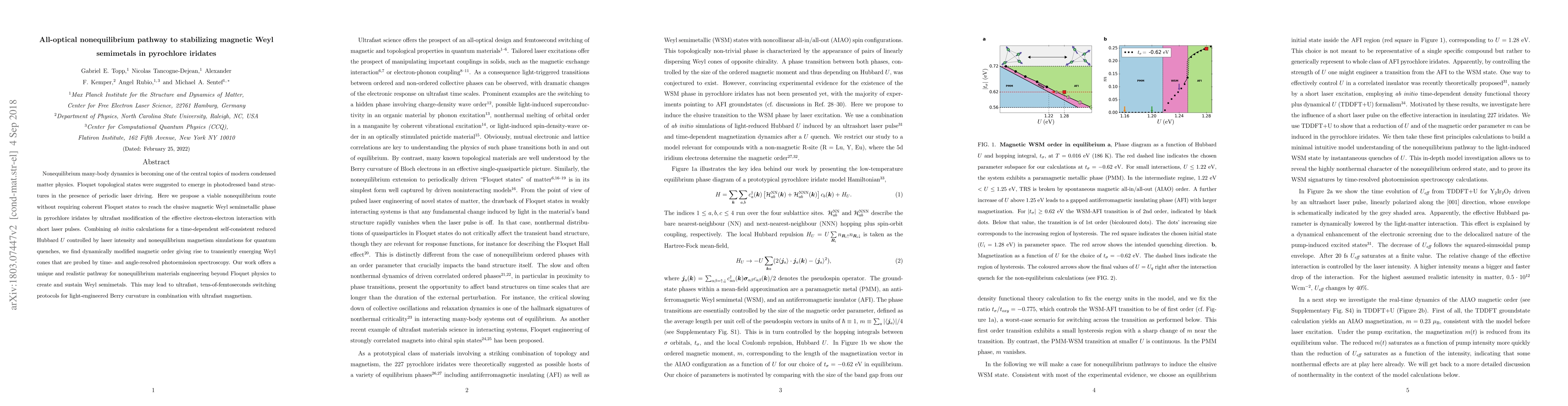 This research proposes a nonequilibrium pathway to stabilize magnetic Weyl semimetals in pyrochlore iridates using ultrafast laser pulses to modify electron-electron interactions. The approach leverages \textit{ab initio} calculations and simulations to demonstrate transient Weyl cones, offering a novel method for creating Weyl semimetals beyond Floquet physics.