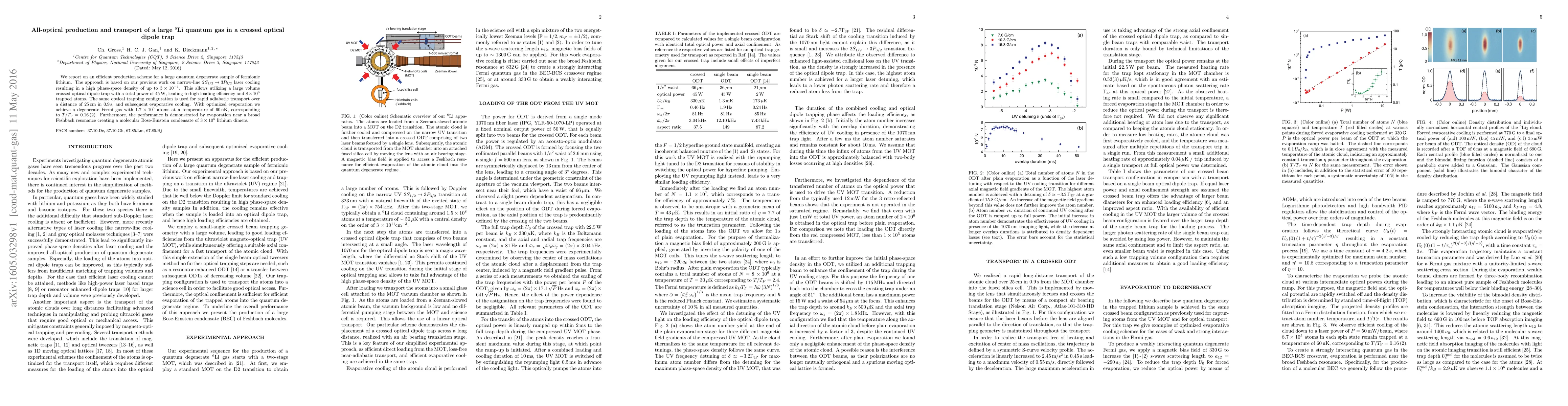 This paper details an efficient method for producing and transporting a large quantum degenerate sample of $^6$Li atoms using crossed optical dipole traps, achieving high phase-space density and trapping up to $8\times10^6$ atoms. The study also demonstrates rapid transport over 25 cm and subsequent evaporative cooling to create a degenerate Fermi gas with $1.7\times10^6$ atoms at $60\, \textrm{nK}$.