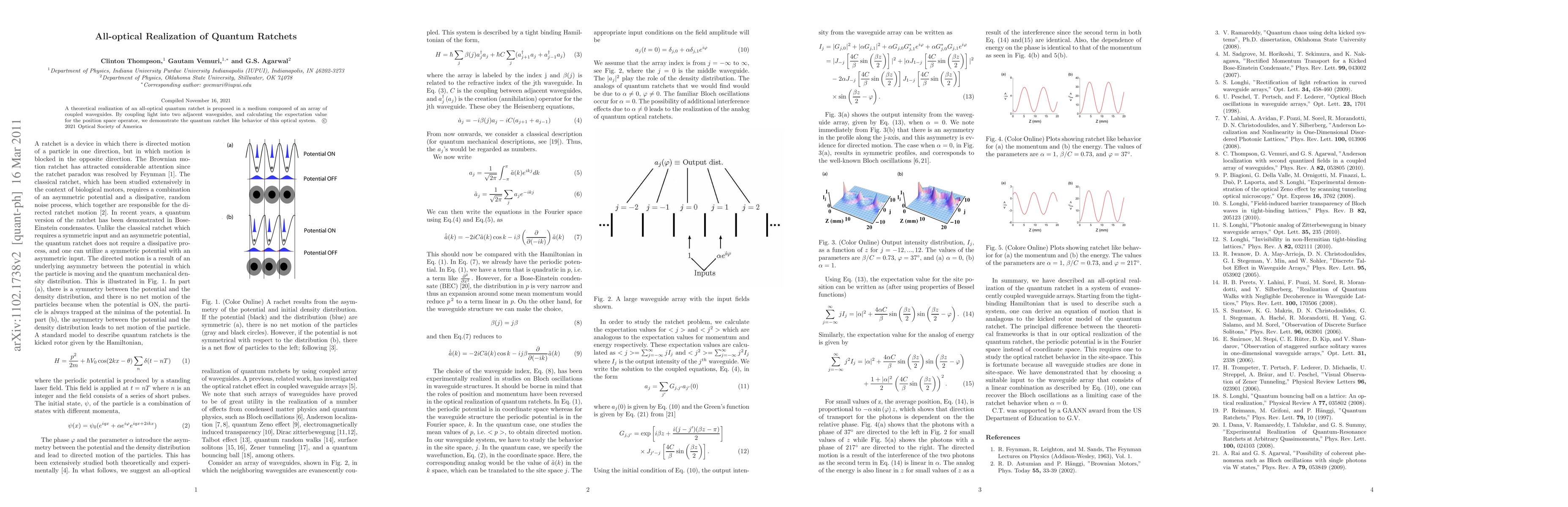 A theoretical realization of an all-optical quantum ratchet is proposed in a medium composed of an array of coupled waveguides. By coupling light into two adjacent waveguides, and calculating the expectation value for the position space operator, we demonstrate the quantum ratchet like behavior of this optical system.