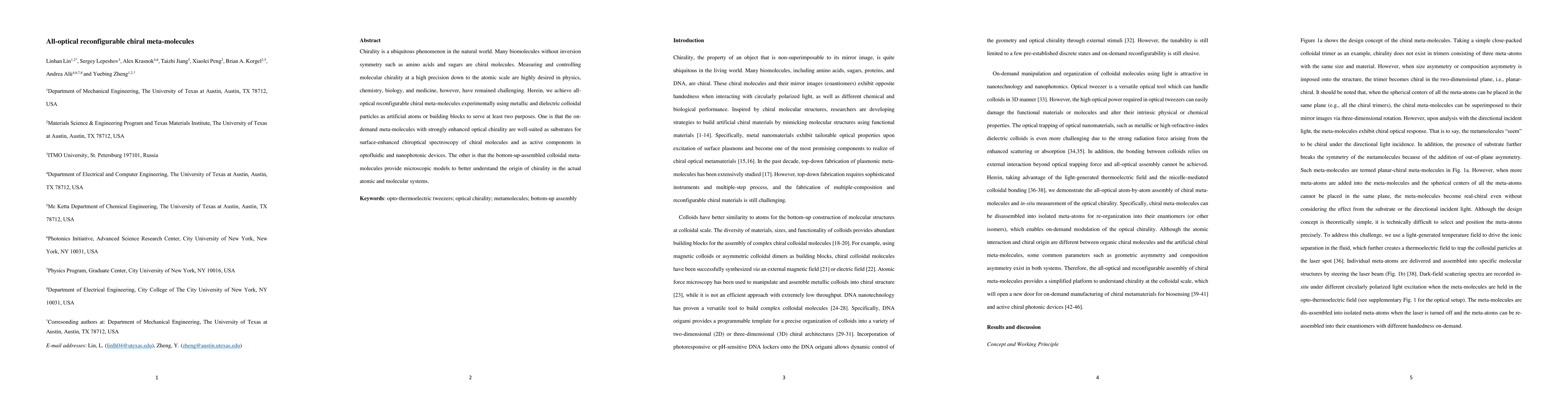 The development of opto-thermoelectric tweezers for precise, all-optical manipulation and assembly of chiral meta-molecules.