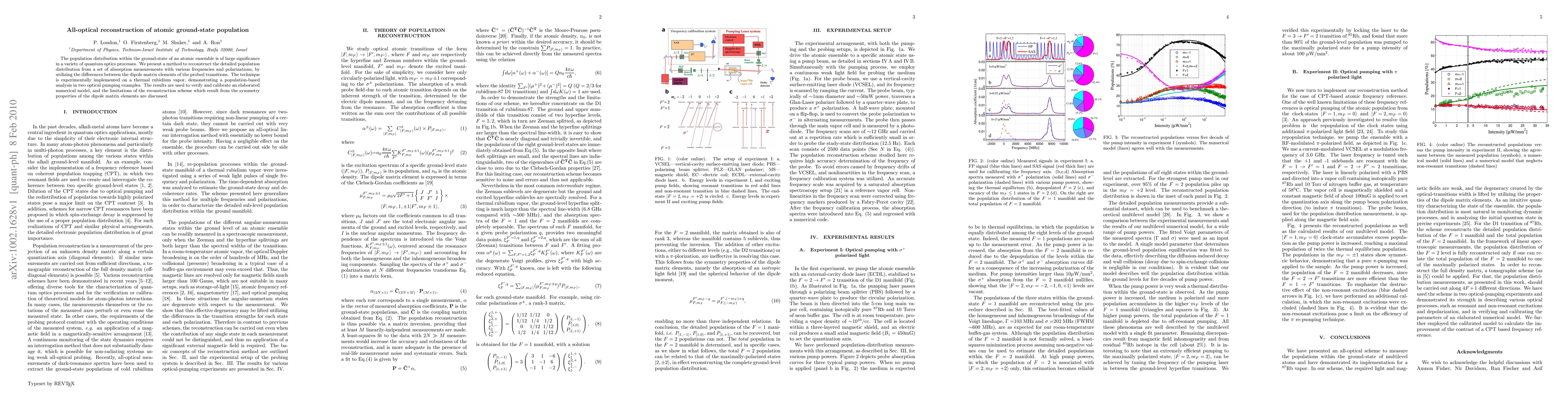 This paper presents an all-optical method to reconstruct the ground-state population distribution in an atomic ensemble using absorption measurements across various frequencies and polarizations. The technique is demonstrated experimentally on rubidium vapor, verifying a detailed numerical model and discussing its limitations due to dipole matrix element symmetries.