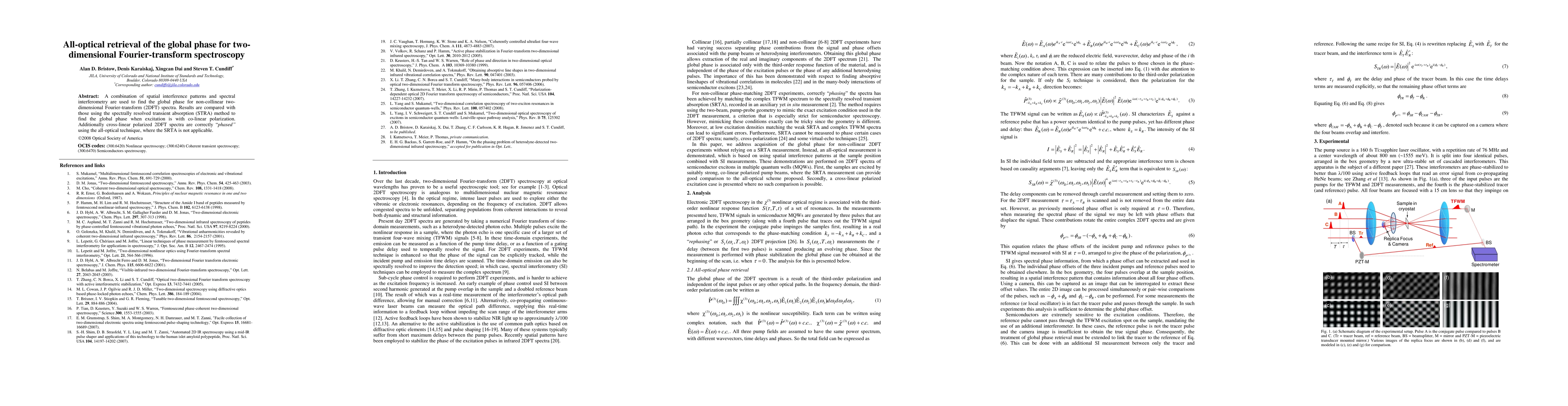 This paper presents an all-optical method combining spatial interference patterns and spectral interferometry for retrieving the global phase in non-collinear two-dimensional Fourier-transform spectroscopy, successfully phasing cross-linear polarized spectra where the spectrally resolved transient absorption method fails.