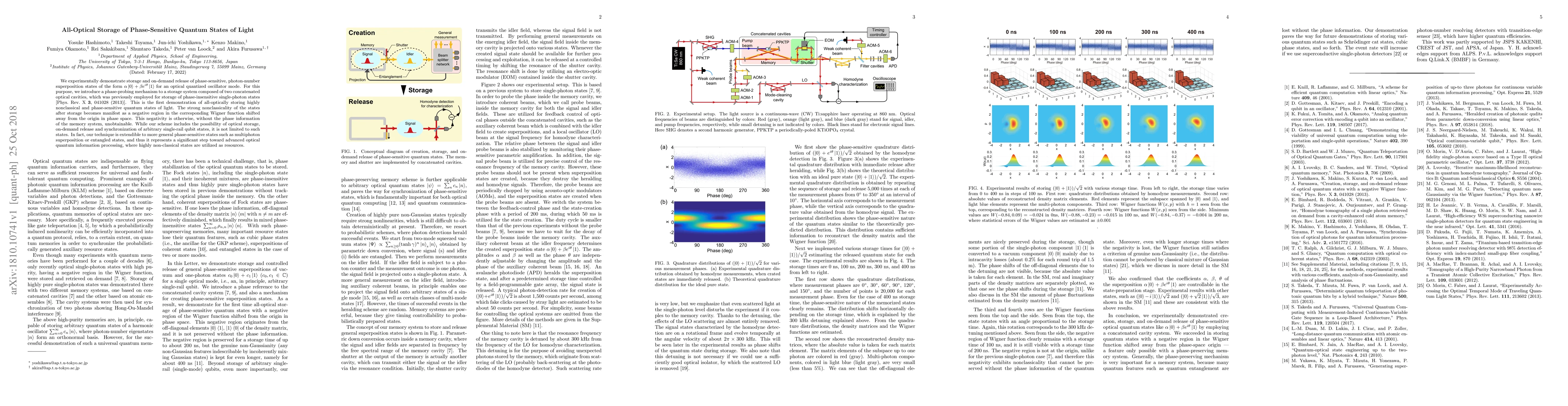 This paper demonstrates the first all-optical storage and on-demand release of phase-sensitive quantum states of light, showing strong nonclassicality through a negative region in the Wigner function. The technique extends to multiphoton superpositions and entangled states, marking a significant advancement in optical quantum information processing.