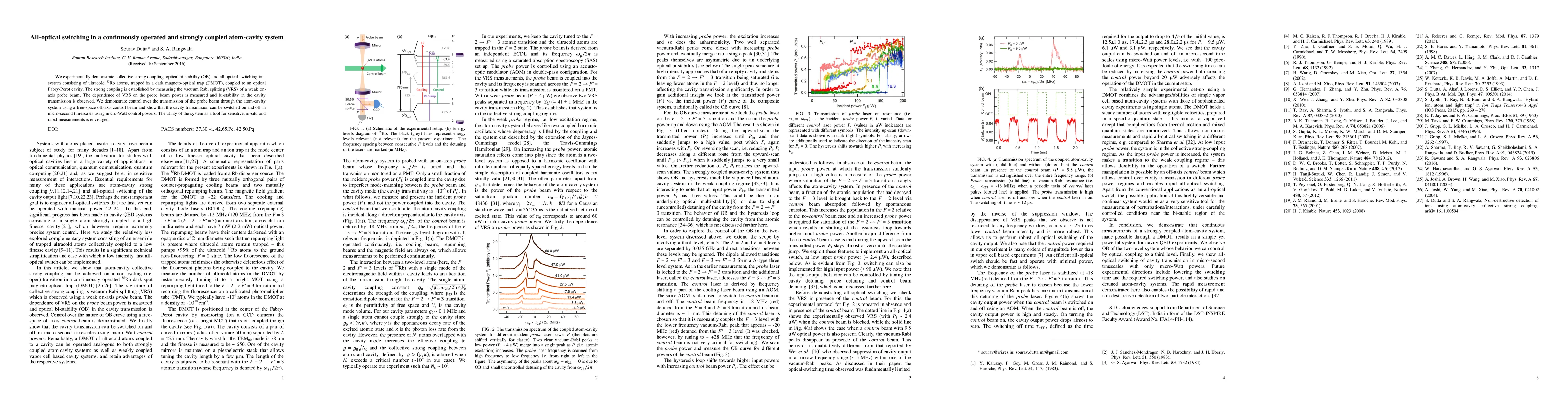 Researchers created an atom-cavity system that can switch on and off using a tiny amount of light, enabling rapid measurements with high sensitivity. They achieved this through strong coupling, optical bistability, and control over the transmission of a probe beam.