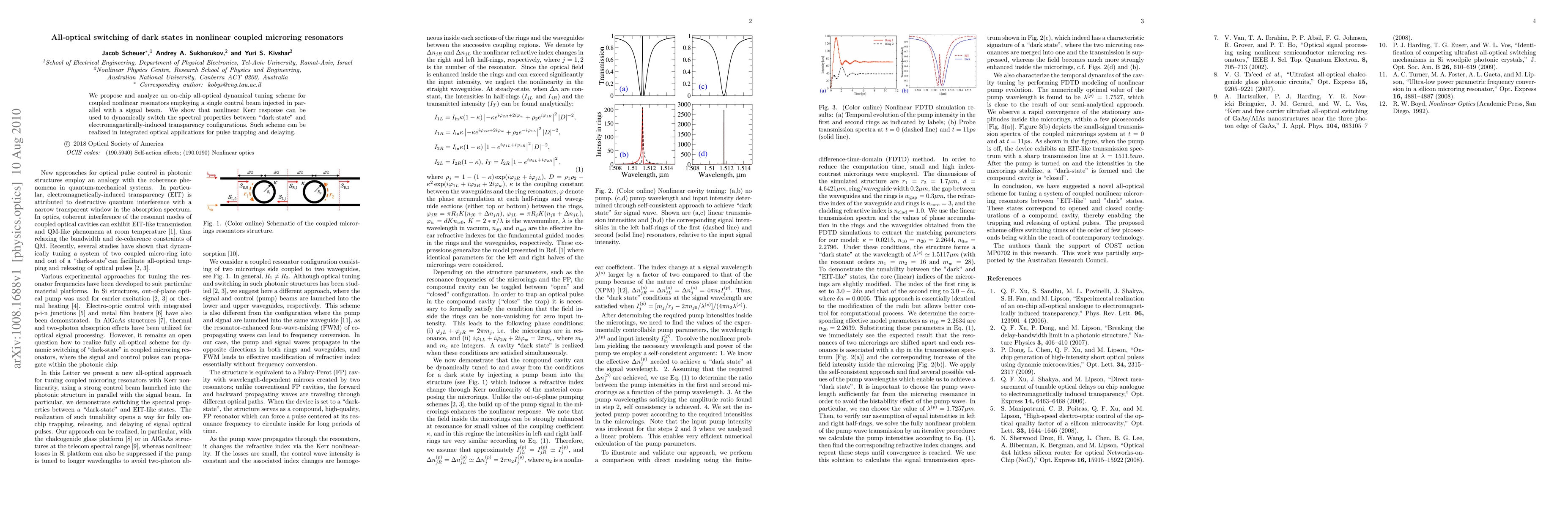 This paper proposes an all-optical method for dynamically tuning coupled nonlinear microring resonators using a single control beam. It demonstrates the ability to switch between dark-state and electromagnetically-induced transparency configurations via the Kerr effect, enabling potential applications in pulse trapping and delay.