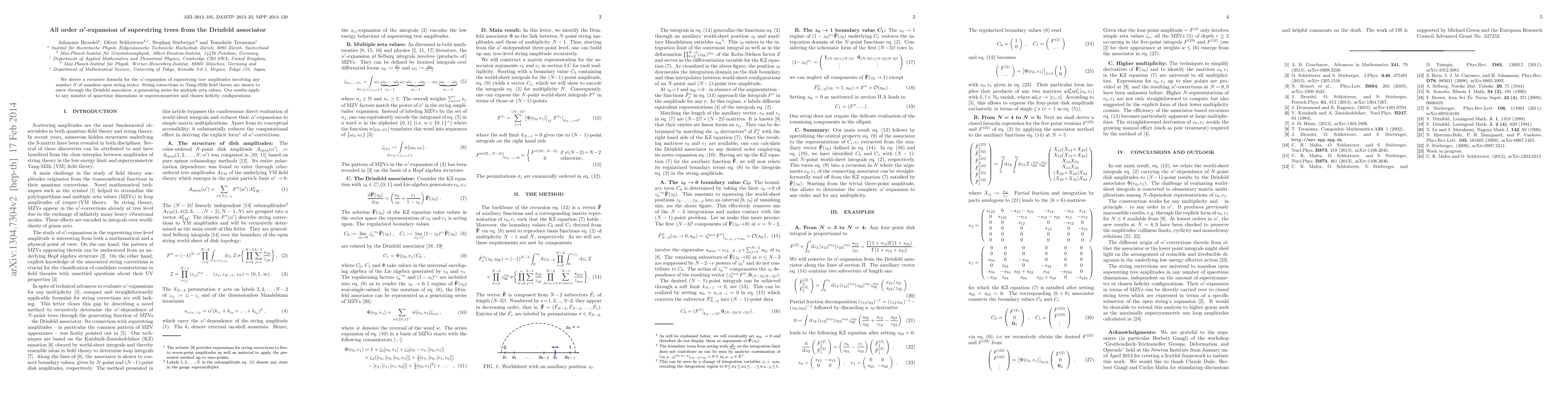 This research provides a recursive formula for the alpha'-expansion of superstring tree amplitudes, showing that string corrections to Yang-Mills theory are represented via the Drinfeld associator, applicable across various dimensions, supersymmetries, and helicities.