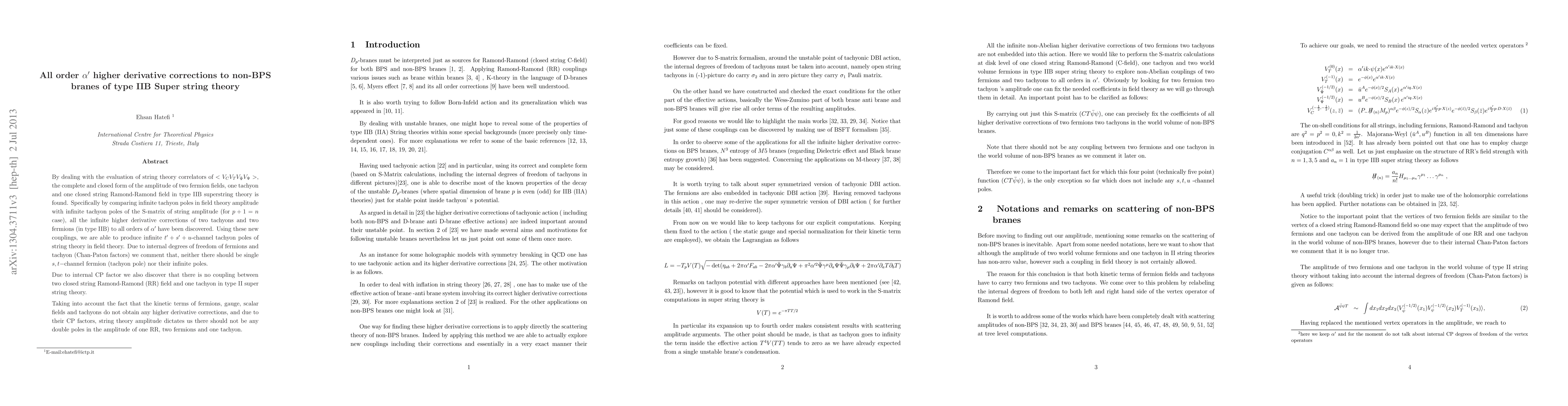 corrections of two tachyons and two fermions (in type IIB) to all orders of