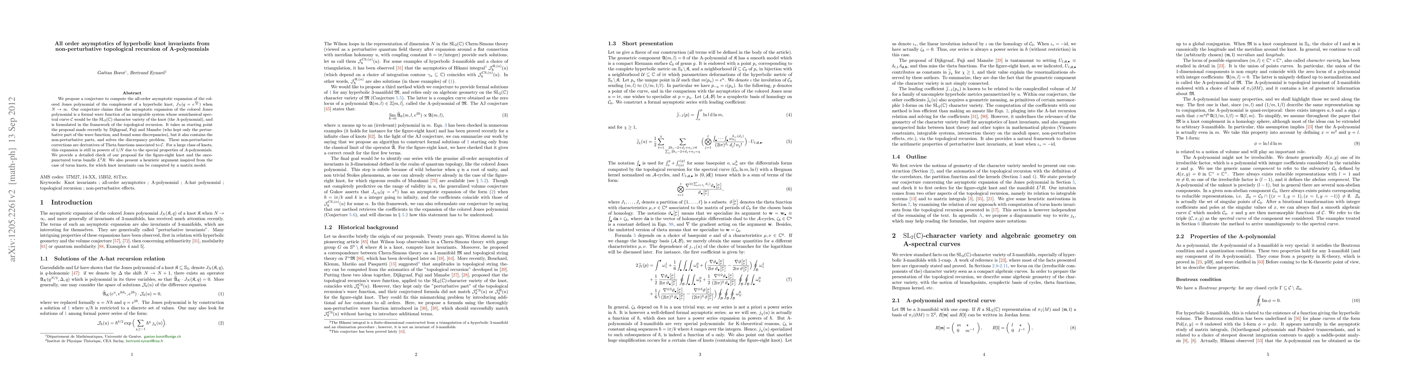 We propose a conjecture to compute the all-order asymptotic expansion of the colored Jones polynomial of the complement of a hyperbolic knot, J_N(q = exp(2u/N)) when N goes to infinity. Our conjecture claims that the asymptotic expansion of the colored Jones polynomial is a the formal wave function of an integrable system whose semiclassical spectral curve S would be the SL_2(C) character variety of the knot (the A-polynomial), and is formulated in the framework of the topological recursion. It takes as starting point the proposal made recently by Dijkgraaf, Fuji and Manabe (who kept only the perturbative part of the wave function, and found some discrepancies), but it also contains the non-perturbative parts, and solves the discrepancy problem. These non-perturbative corrections are derivatives of Theta functions associated to S, but the expansion is still in powers of 1/N due to the special properties of A-polynomials. We provide a detailed check for the figure-eight knot and the once-punctured torus bundle L^2R. We also present a heuristic argument inspired from the case of torus knots, for which knot invariants can be computed from a matrix model.