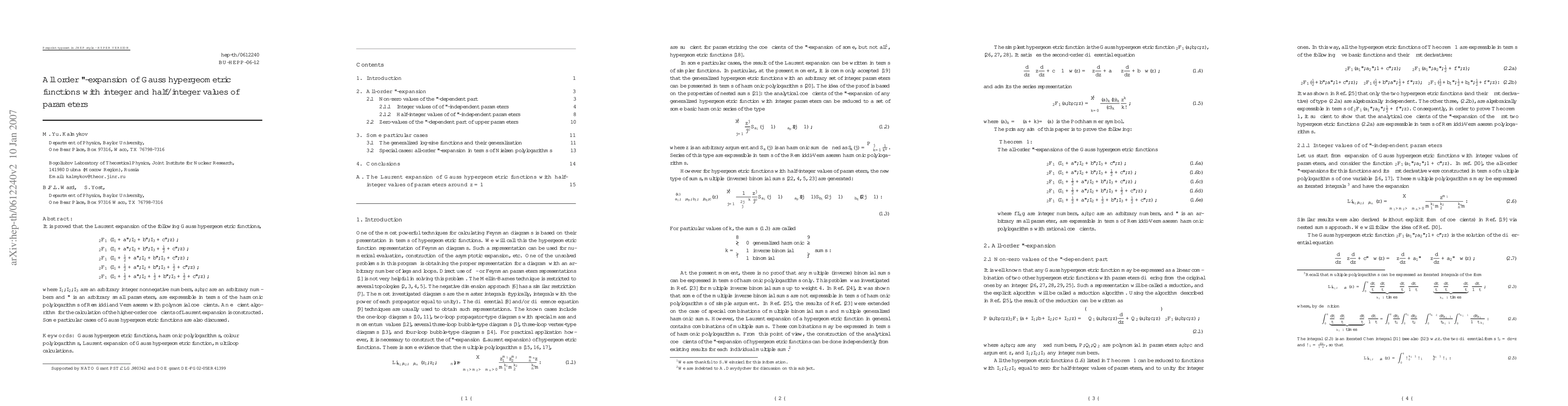 This paper presents the all order epsilon-expansion of Gauss hypergeometric functions with integer and half-integer parameters, expressing them in terms of harmonic polylogarithms with polynomial coefficients. An efficient algorithm for calculating higher-order coefficients in the Laurent expansion is developed, with discussions on specific cases.