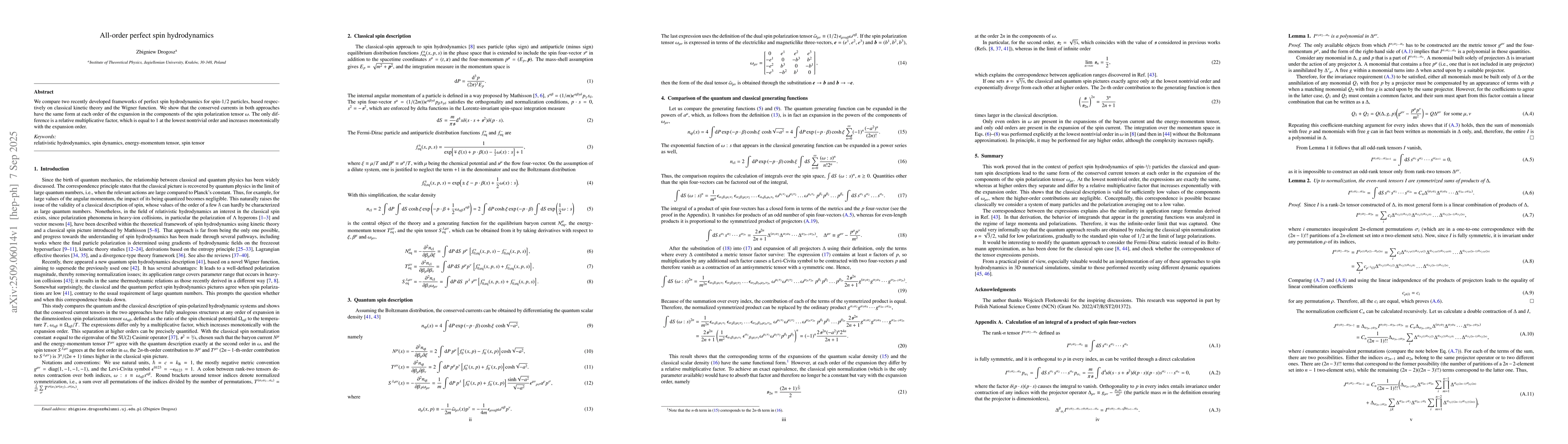 We compare two recently developed frameworks of perfect spin hydrodynamics for spin-$1/2$ particles, based respectively on classical kinetic theory and the Wigner function. We show that the conserved currents in both approaches have the same form at each order of the expansion in the components of the spin polarization tensor $\omega$. The only difference is a relative multiplicative factor, which is equal to 1 at the lowest nontrivial order and increases monotonically with the expansion order.