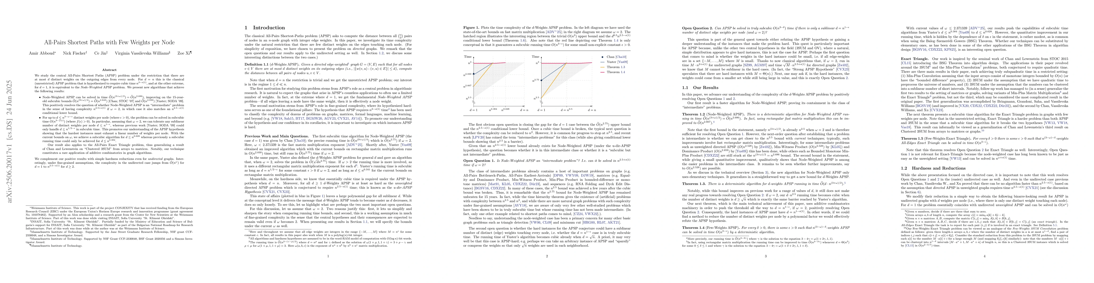 We study the central All-Pairs Shortest Paths (APSP) problem under the restriction that there are at most $d$ distinct weights on the outgoing edges from every node. For $d=n$ this is the classical (unrestricted) APSP problem that is hypothesized to require cubic time $n^{3-o(1)}$, and at the other extreme, for $d=1$, it is equivalent to the Node-Weighted APSP problem. We present new algorithms that achieve the following results: 1. Node-Weighted APSP can be solved in time $\tilde{O}(n^{(3+\omega)/2}) = \tilde{O}(n^{2.686})$, improving on the 15-year-old subcubic bounds $\tilde{O}(n^{(9+\omega)/4}) = \tilde{O}(n^{2.843})$ [Chan; STOC '07] and $\tilde{O}(n^{2.830})$ [Yuster; SODA '09]. This positively resolves the question of whether Node-Weighted APSP is an ``intermediate'' problem in the sense of having complexity $n^{2.5+o(1)}$ if $\omega=2$, in which case it also matches an $n^{2.5-o(1)}$ conditional lower bound. 2. For up to $d \leq n^{3-\omega-\epsilon}$ distinct weights per node (where $\epsilon > 0$), the problem can be solved in subcubic time $O(n^{3-f(\epsilon)})$ (where $f(\epsilon) > 0$). In particular, assuming that $\omega = 2$, we can tolerate any sublinear number of distinct weights per node $d \leq n^{1-\epsilon}$, whereas previous work [Yuster; SODA '09] could only handle $d \leq n^{1/2-\epsilon}$ in subcubic time. This promotes our understanding of the APSP hypothesis showing that the hardest instances must exhaust a linear number of weights per node. Our result also applies to the All-Pairs Exact Triangle problem, thus generalizing a result of Chan and Lewenstein on "Clustered 3SUM" from arrays to matrices. Notably, our technique constitutes a rare application of additive combinatorics in graph algorithms.