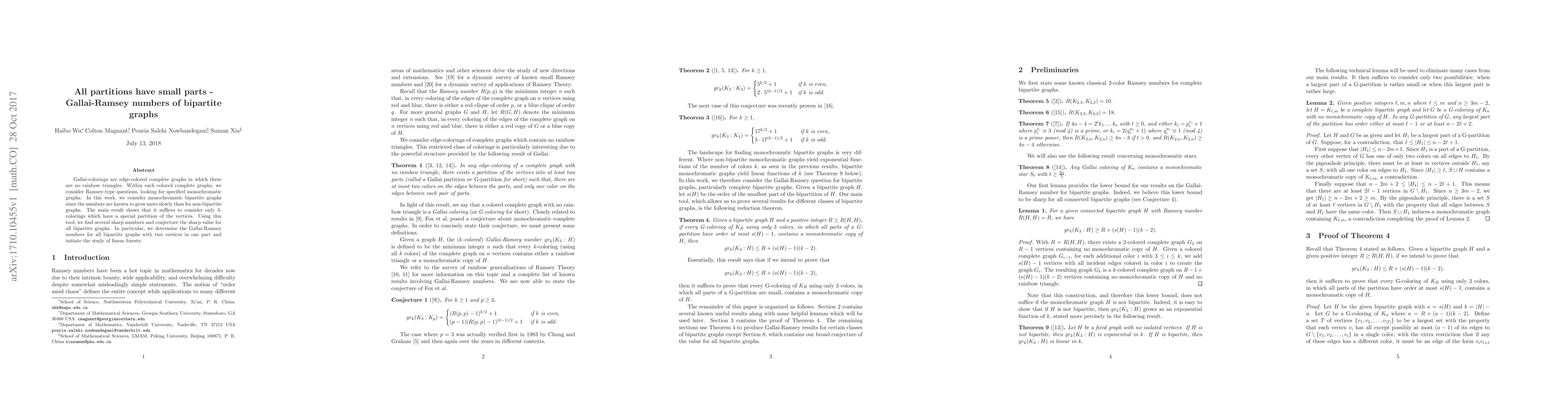 Gallai-colorings are edge-colored complete graphs in which there are no rainbow triangles. Within such colored complete graphs, we consider Ramsey-type questions, looking for specified monochromatic graphs. In this work, we consider monochromatic bipartite graphs since the numbers are known to grow more slowly than for non-bipartite graphs. The main result shows that it suffices to consider only $3$-colorings which have a special partition of the vertices. Using this tool, we find several sharp numbers and conjecture the sharp value for all bipartite graphs. In particular, we determine the Gallai-Ramsey numbers for all bipartite graphs with two vertices in one part and initiate the study of linear forests.