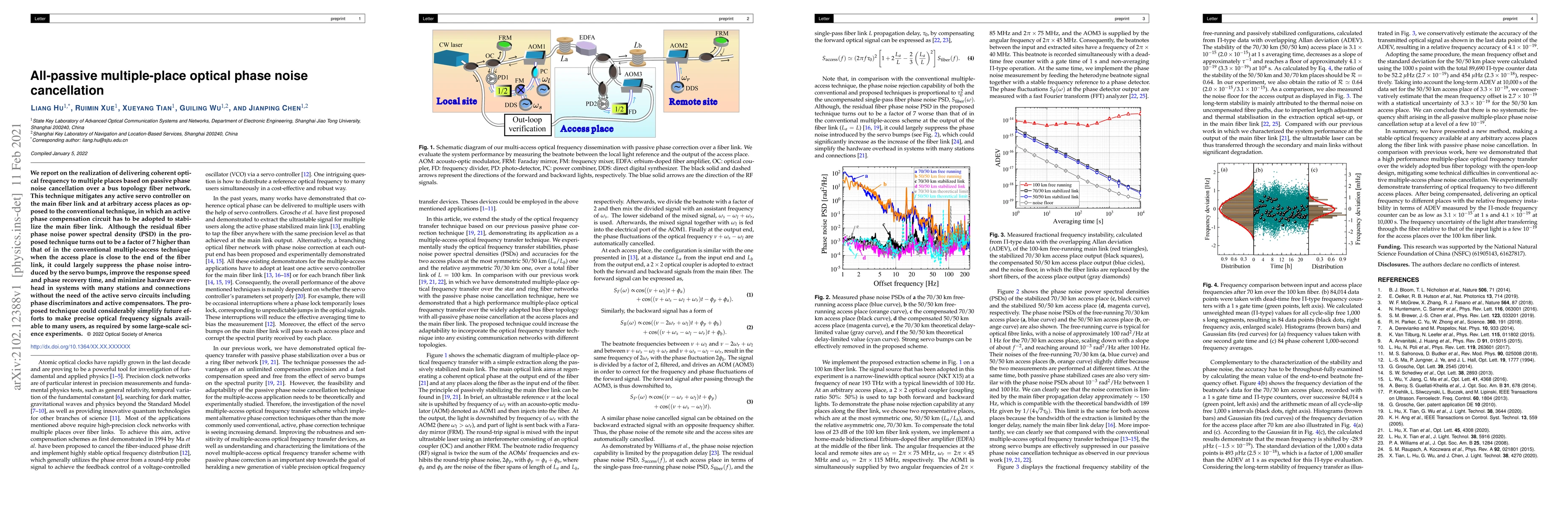 We report on the realization of delivering coherent optical frequency to multiple places based on passive phase noise cancellation over a bus topology fiber network. This technique mitigates any active servo controller on the main fiber link and at arbitrary access places as opposed to the conventional technique, in which an active phase compensation circuit has to be adopted to stabilize the main fiber link. Although the residual fiber phase noise power spectral density (PSD) in the proposed technique turns out to be a factor of 7 higher than that of in the conventional multiple-access technique when the access place is close to the end of the fiber link, it could largely suppress the phase noise introduced by the servo bumps, improve the response speed and phase recovery time, and minimize hardware overhead in systems with many stations and connections without the need of the active servo circuits including phase discriminators and active compensators. The proposed technique could considerably simplify future efforts to make precise optical frequency signals available to many users, as required by some large-scale science experiments.