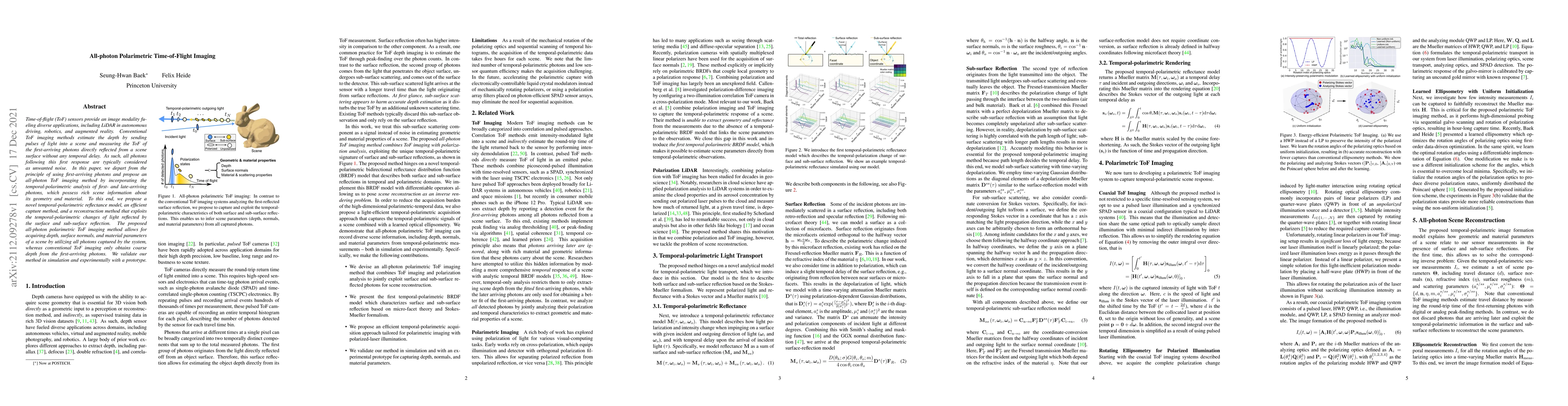 This paper introduces an all-photon polarimetric time-of-flight imaging method that utilizes both first-arriving and late-arriving photons to extract more detailed scene information, including depth, surface normals, and material parameters, compared to conventional ToF imaging. The method employs a novel temporal-polarimetric reflectance model and an efficient capture technique.