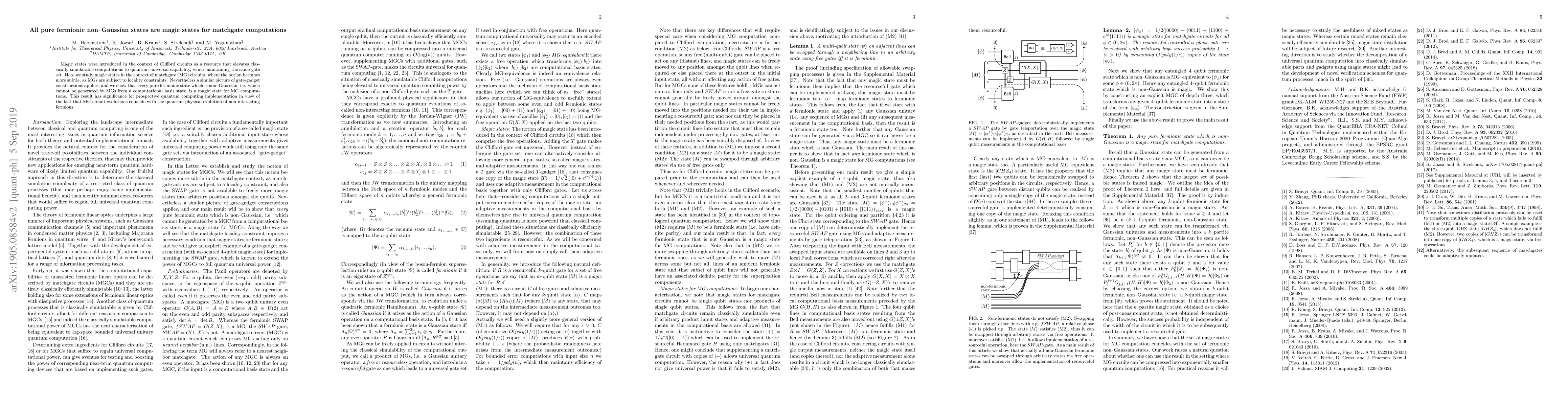 This paper demonstrates that all pure fermionic non-Gaussian states serve as magic states for matchgate computations, enhancing quantum universality while preserving the same gate set. The findings are significant for quantum computing, as matchgate circuits mimic the natural evolution of non-interacting fermions.