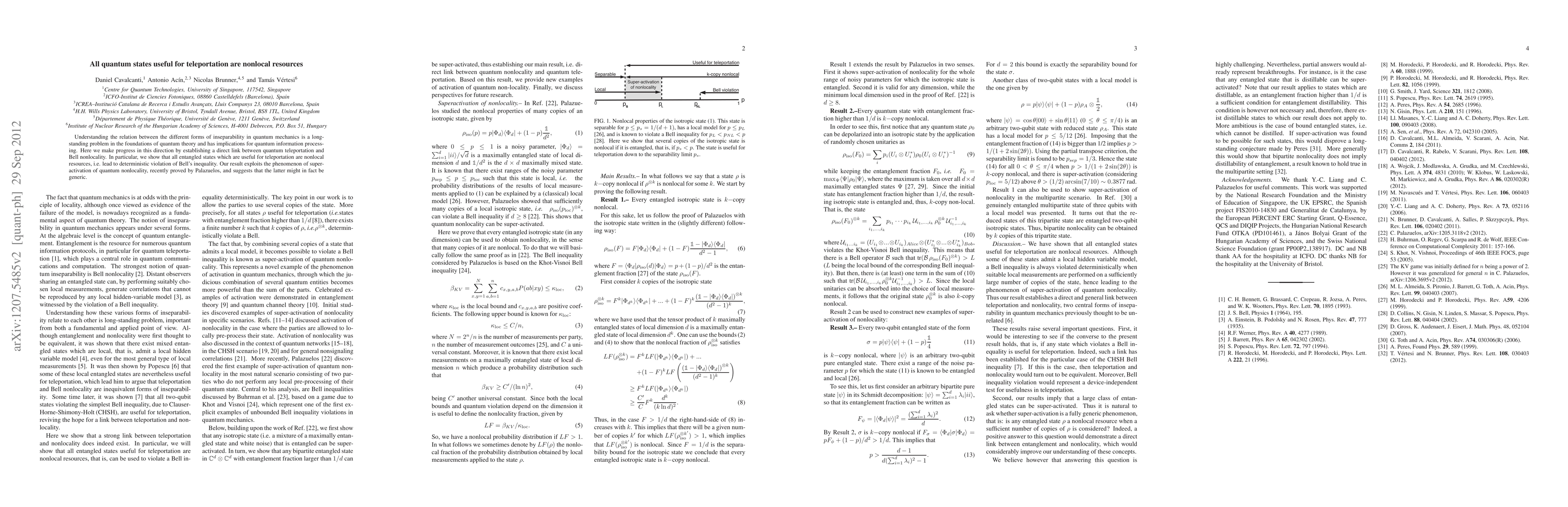 This paper establishes that all quantum states capable of enabling teleportation are inherently nonlocal, leading to deterministic violations of Bell's inequality. This finding links quantum teleportation directly to Bell nonlocality and suggests that super-activation of quantum nonlocality may be a common feature.