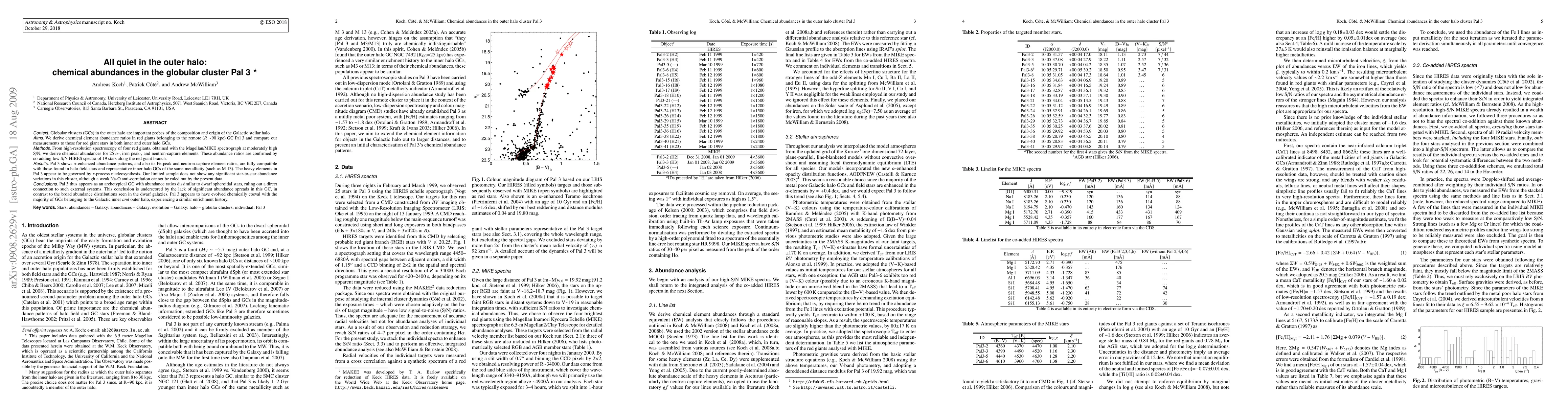 This study investigates the chemical abundances of the globular cluster Pal 3, located in the outer Galactic halo, revealing alpha-enhanced patterns and Fe-peak and neutron-capture element ratios consistent with inner halo GCs. The findings suggest Pal 3's chemical evolution aligns with typical Galactic halo GCs, lacking significant star-to-star variations and ruling out a direct connection to dwarf spheroidal galaxies.