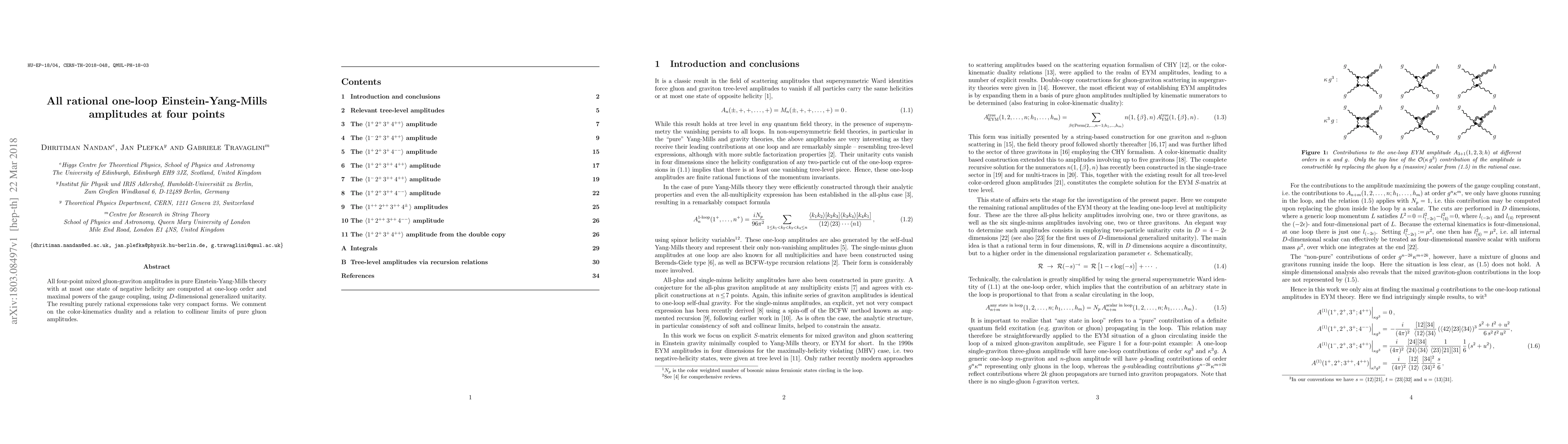 This paper computes all four-point one-loop mixed gluon-graviton amplitudes in Einstein-Yang-Mills theory using D-dimensional generalized unitarity, yielding purely rational and compact expressions. The study also discusses color-kinematics duality and relates these results to collinear limits of pure gluon amplitudes.