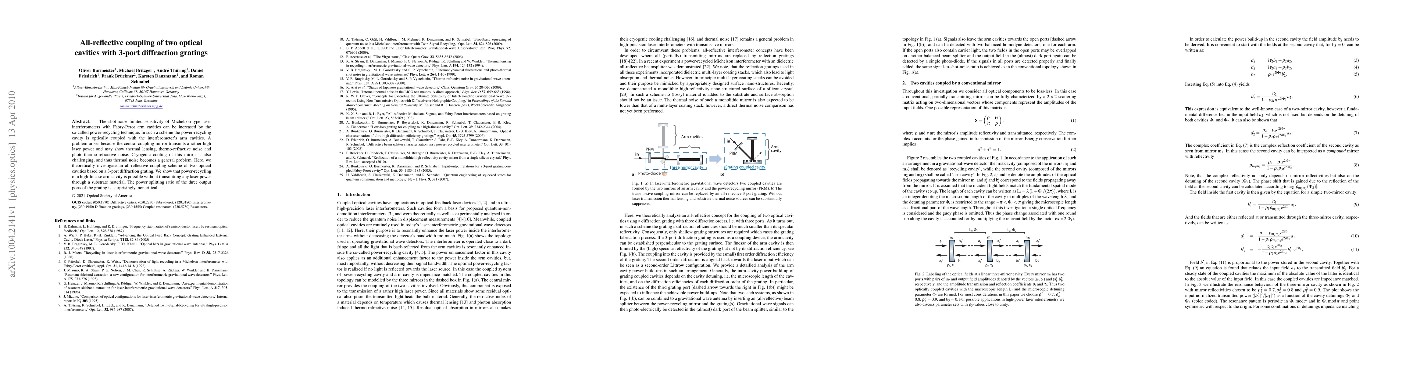 Researchers developed an all-reflective coupling scheme for two optical cavities using a 3-port diffraction grating, reducing thermal noise and increasing sensitivity in laser interferometers without transmitting laser power through substrates.