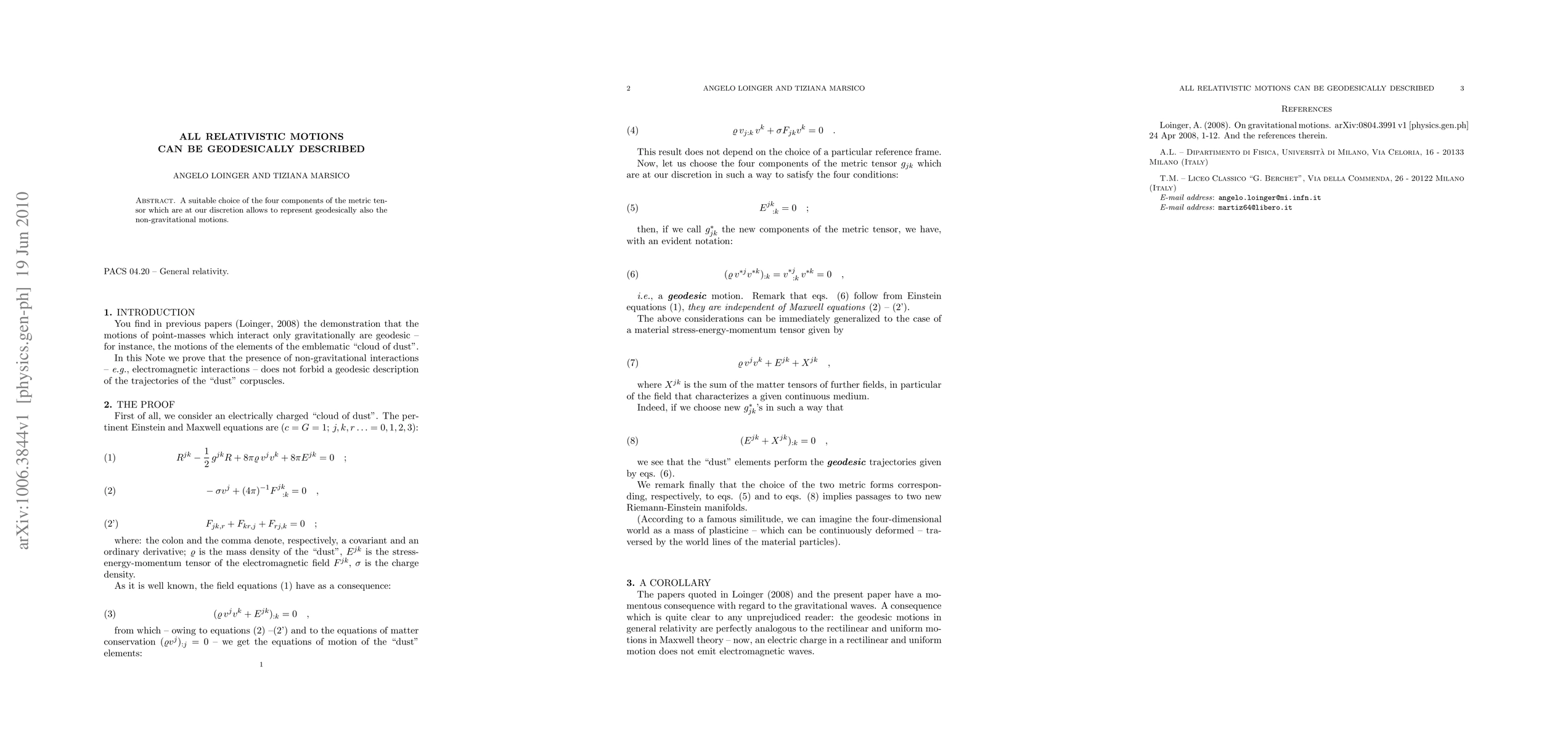 A suitable choice of the four components of the metric tensor which are at our discretion allows to represent geodesically also the non-gravitational motions.