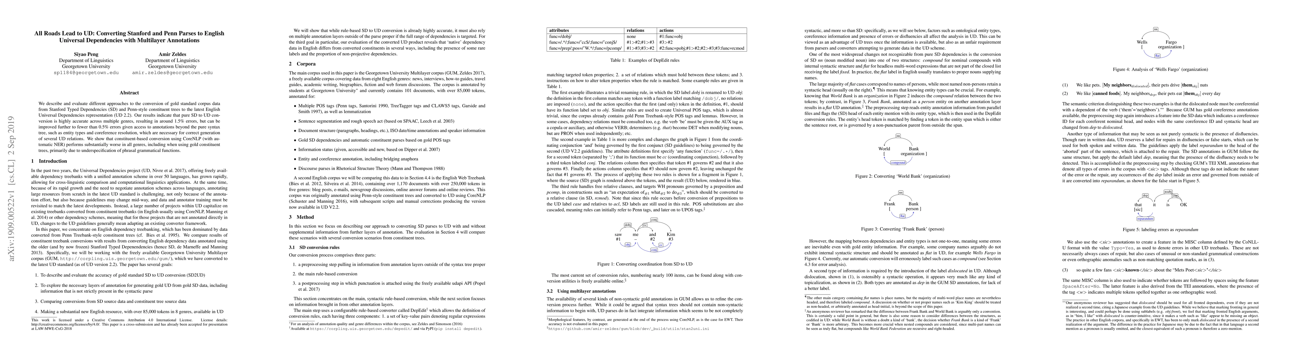 Converting Stanford Typed Dependencies and Penn-style constituent trees to English Universal Dependencies is highly accurate with minimal errors, especially when using additional annotations like entity types and coreference resolution.