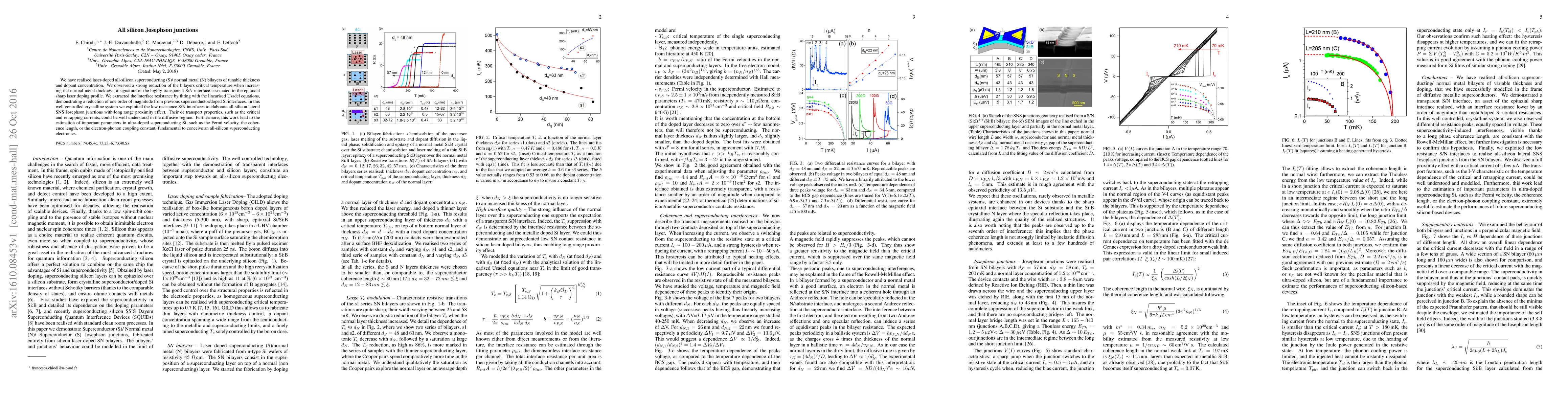 This research demonstrates laser-doped all-silicon Josephson junctions with tunable properties, showing a significant reduction in critical temperature and improved interface transparency. The study also estimates key parameters for developing all-silicon superconducting electronics.