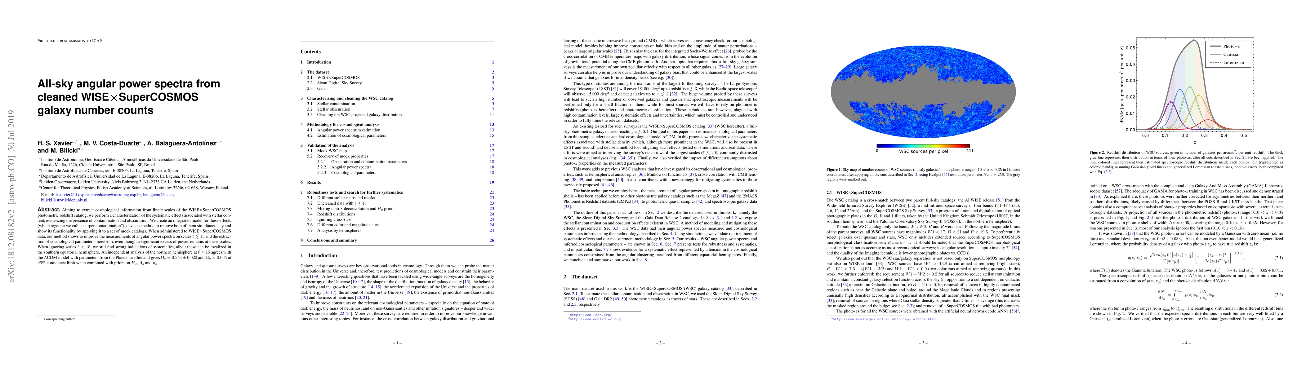 Aiming to extract cosmological information from linear scales of the WISE$\times$SuperCOSMOS photometric redshift catalog, we perform a characterization of the systematic effects associated with stellar content, evidencing the presence of contamination and obscuration. We create an integrated model for these effects (which together we call `usurper contamination'), devise a method to remove both of them simultaneously and show its functionality by applying it to a set of mock catalogs. When administered to WISE$\times$SuperCOSMOS data, our method shows to improve the measurements of angular power spectra on scales $\ell\lesssim15$ and the extraction of cosmological parameters therefrom, even though a significant excess of power remains at these scales. When ignoring scales $\ell<15$, we still find strong indications of systematics, albeit these can be localized in the southern equatorial hemisphere. An independent analysis of the northern hemisphere at $\ell\geq 15$ agrees with a $\Lambda$CDM model with parameters from the Planck satellite and gives $\Omega_{\mathrm{c}}=0.254\pm0.020$ and $\Omega_{\mathrm{b}}<0.065$ at 95% confidence limit when combined with priors on $H_0$, $A_s$ and $n_s$.