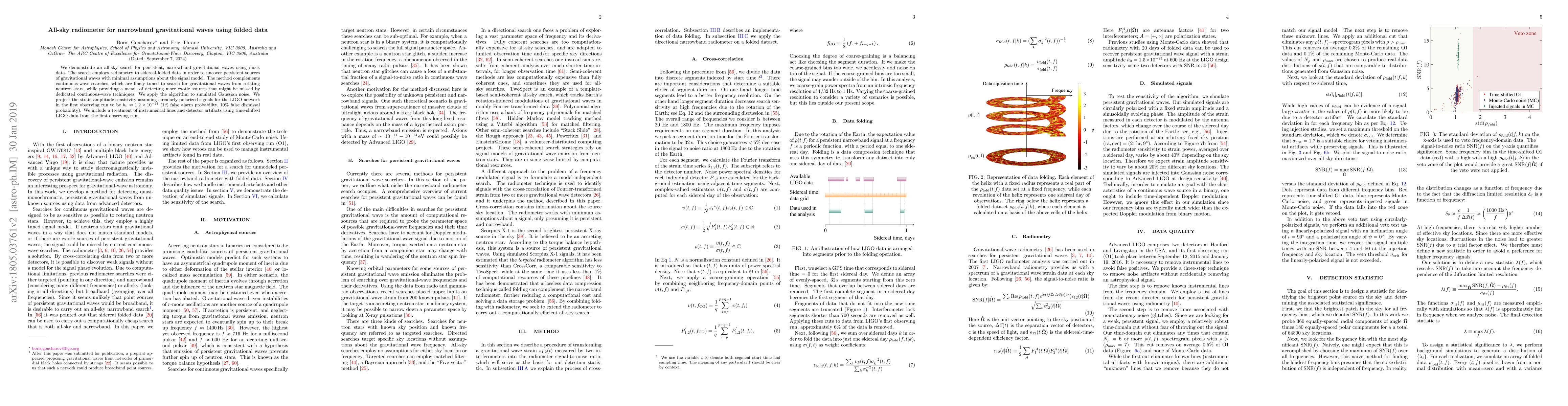 This paper presents an all-sky radiometric search for narrowband gravitational waves using folded data, complementing continuous-wave searches by detecting persistent sources with minimal assumptions. The method achieves a projected strain amplitude sensitivity of $h_0 \approx 1.2 \times 10^{-24}$ for a LIGO network.