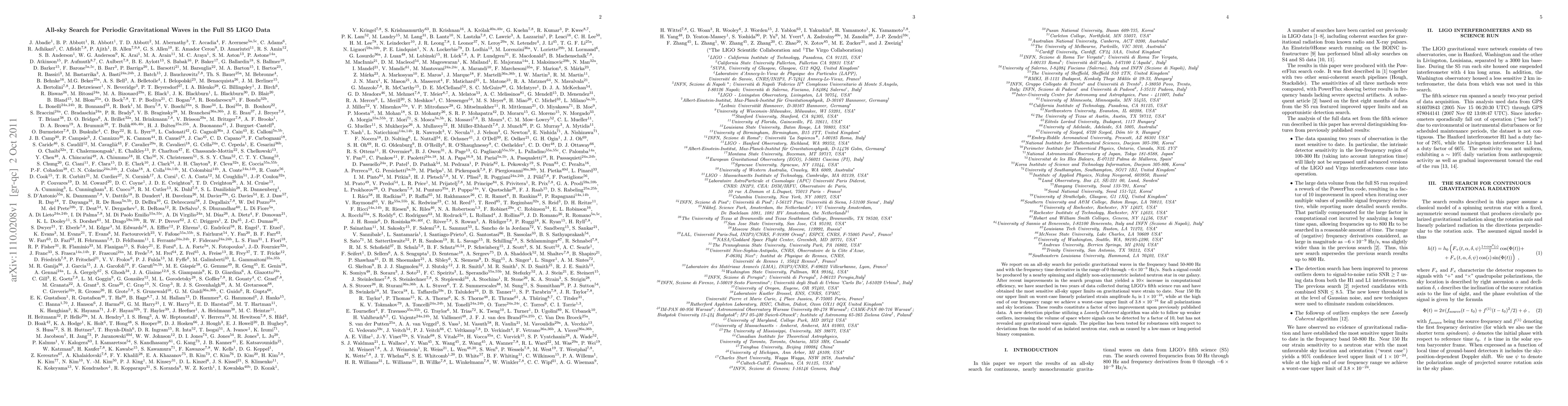 This paper reports an all-sky search for periodic gravitational waves in the 50-800 Hz frequency band using two years of data from LIGO's fifth science run, achieving a 10x increase in computational efficiency. The study sets the most sensitive upper limits on gravitational wave strain, improving previous results by a factor of two.