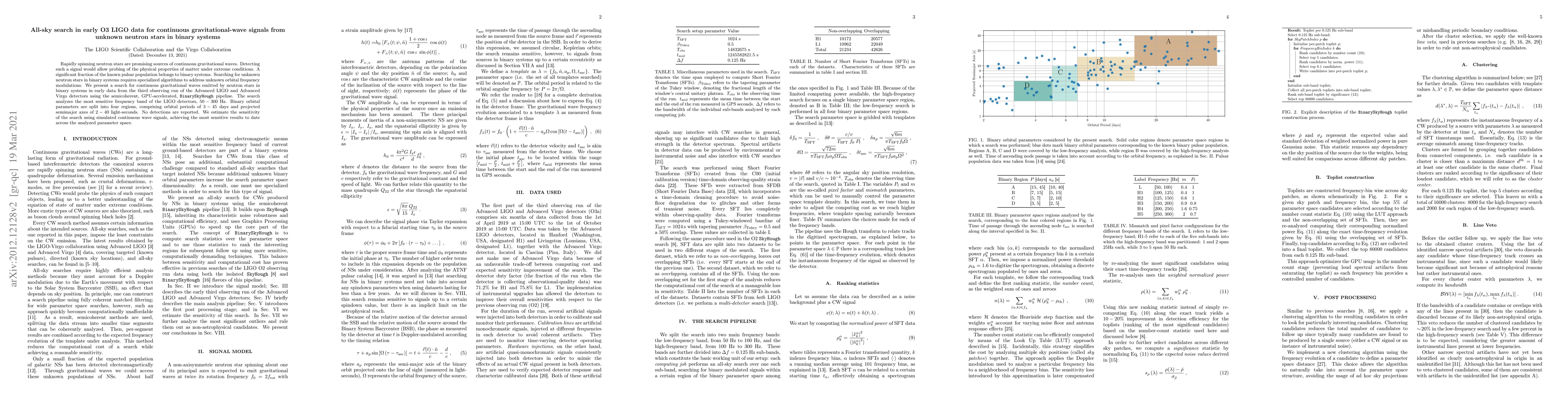 This paper reports a search using the BinarySkyHough pipeline in early O3 LIGO data for continuous gravitational waves from unknown neutron stars in binary systems, achieving the most sensitive results to date. No detections were made, but the search covered a wide range of binary orbital parameters.