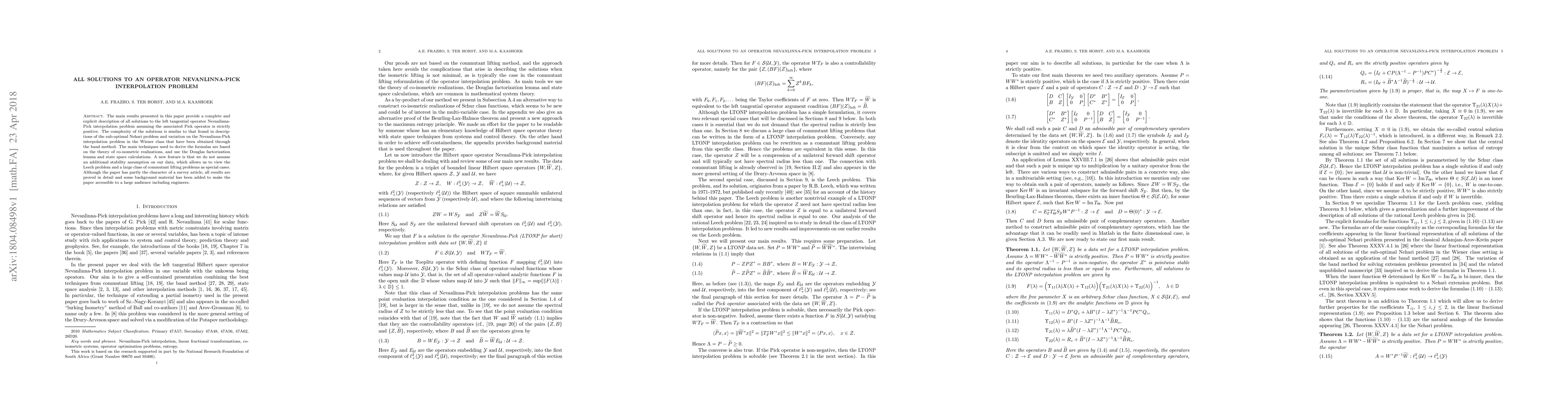 The main results presented in this paper provide a complete and explicit description of all solutions to the left tangential operator Nevanlinna- Pick interpolation problem assuming the associated Pick operator is strictly positive. The complexity of the solutions is similar to that found in descriptions of the sub-optimal Nehari problem and variation on the Nevanlinna-Pick interpolation problem in the Wiener class that have been obtained through the band method. The main techniques used to derive the formulas are based on the theory of co-isometric realizations, and use the Douglas factorization lemma and state space calculations. A new feature is that we do not assume an additional stability assumption on our data, which allows us to view the Leech problem and a large class of commutant lifting problems as special cases. Although the paper has partly the character of a survey article, all results are proved in detail and some background material has been added to make the paper accessible to a large audience including engineers.