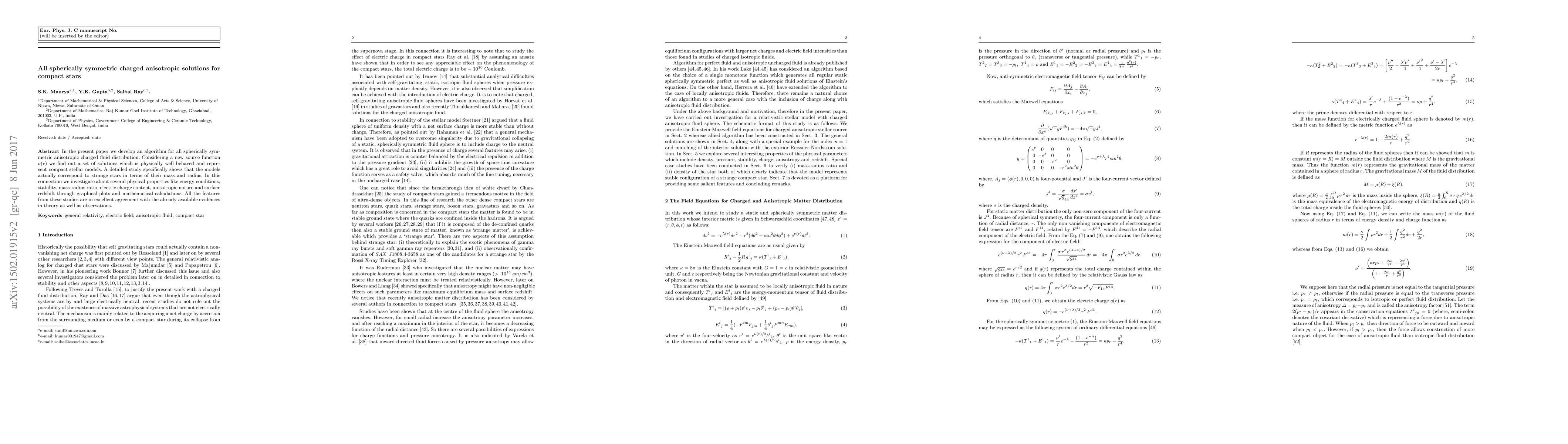 This paper develops an algorithm for spherically symmetric charged anisotropic fluid distributions, finding well-behaved solutions representing compact stellar models, specifically strange stars, and examines their physical properties, confirming consistency with theoretical and observational evidence.