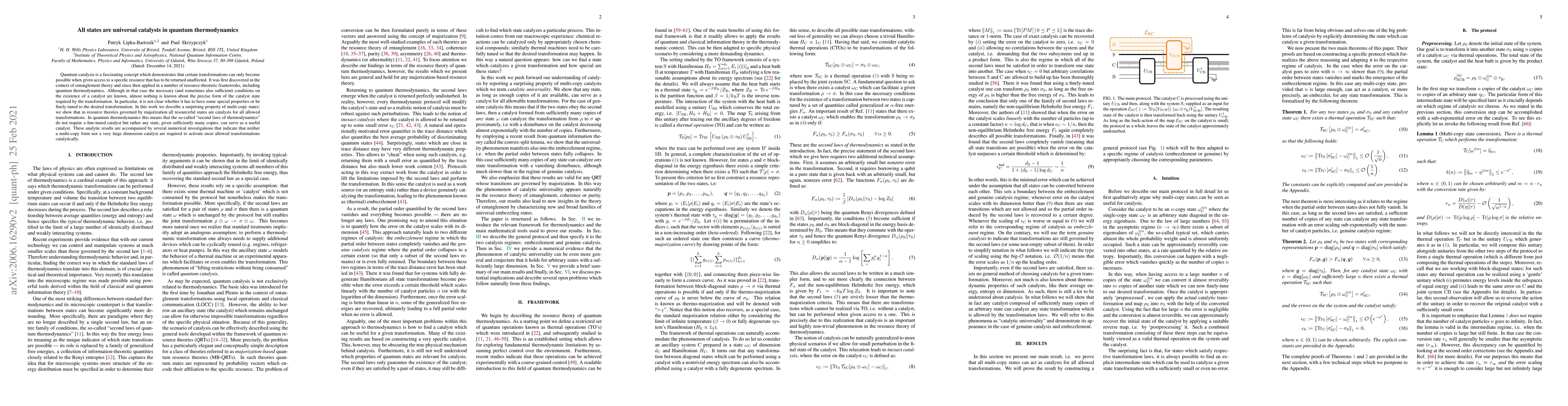 Quantum catalysis is a fascinating concept which demonstrates that certain transformations can only become possible when given access to a specific resource that has to be returned unaffected. It was first discovered in the context of entanglement theory and since then applied in a number of resource-theoretic frameworks, including quantum thermodynamics. Although in that case the necessary (and sometimes also sufficient) conditions on the existence of a catalyst are known, almost nothing is known about the precise form of the catalyst state required by the transformation. In particular, it is not clear whether it has to have some special properties or be finely tuned to the desired transformation. In this work we describe a surprising property of multi-copy states: we show that in resource theories governed by majorization all resourceful states are catalysts for all allowed transformations. In quantum thermodynamics this means that the so-called "second laws of thermodynamics" do not require a fine-tuned catalyst but rather any state, given sufficiently many copies, can serve as a useful catalyst. These analytic results are accompanied by several numerical investigations that indicate that neither a multi-copy form nor a very large dimension catalyst are required to activate most allowed transformations catalytically.