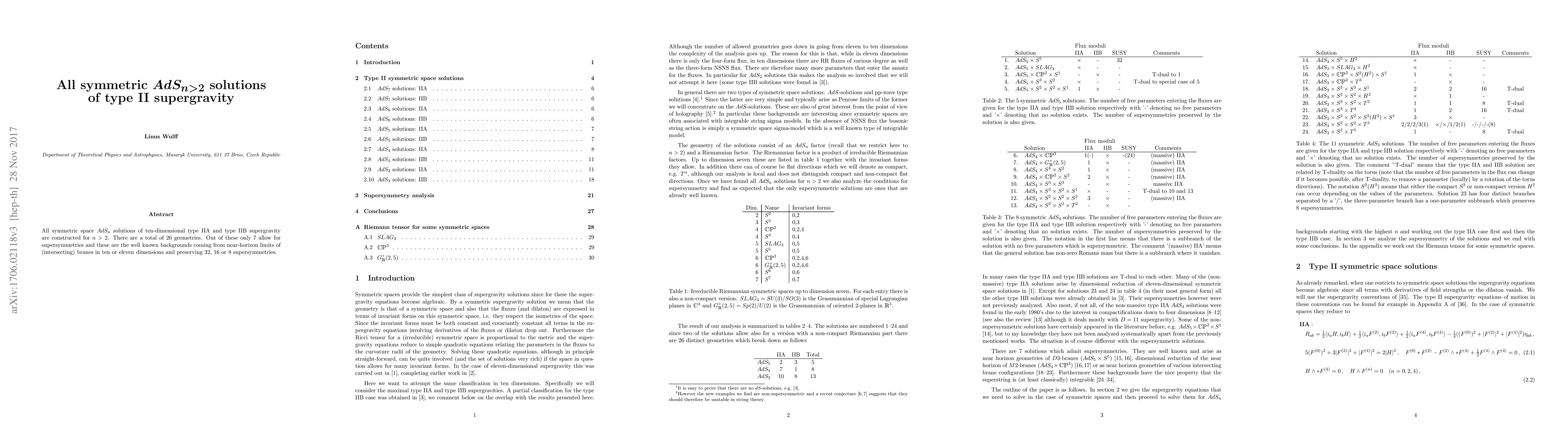 This paper constructs all symmetric space AdS(n) solutions (n>2) for type IIA and IIB supergravity, revealing a total of 26 geometries, with only 7 of these geometries preserving any supersymmetry, corresponding to known backgrounds from brane limits.